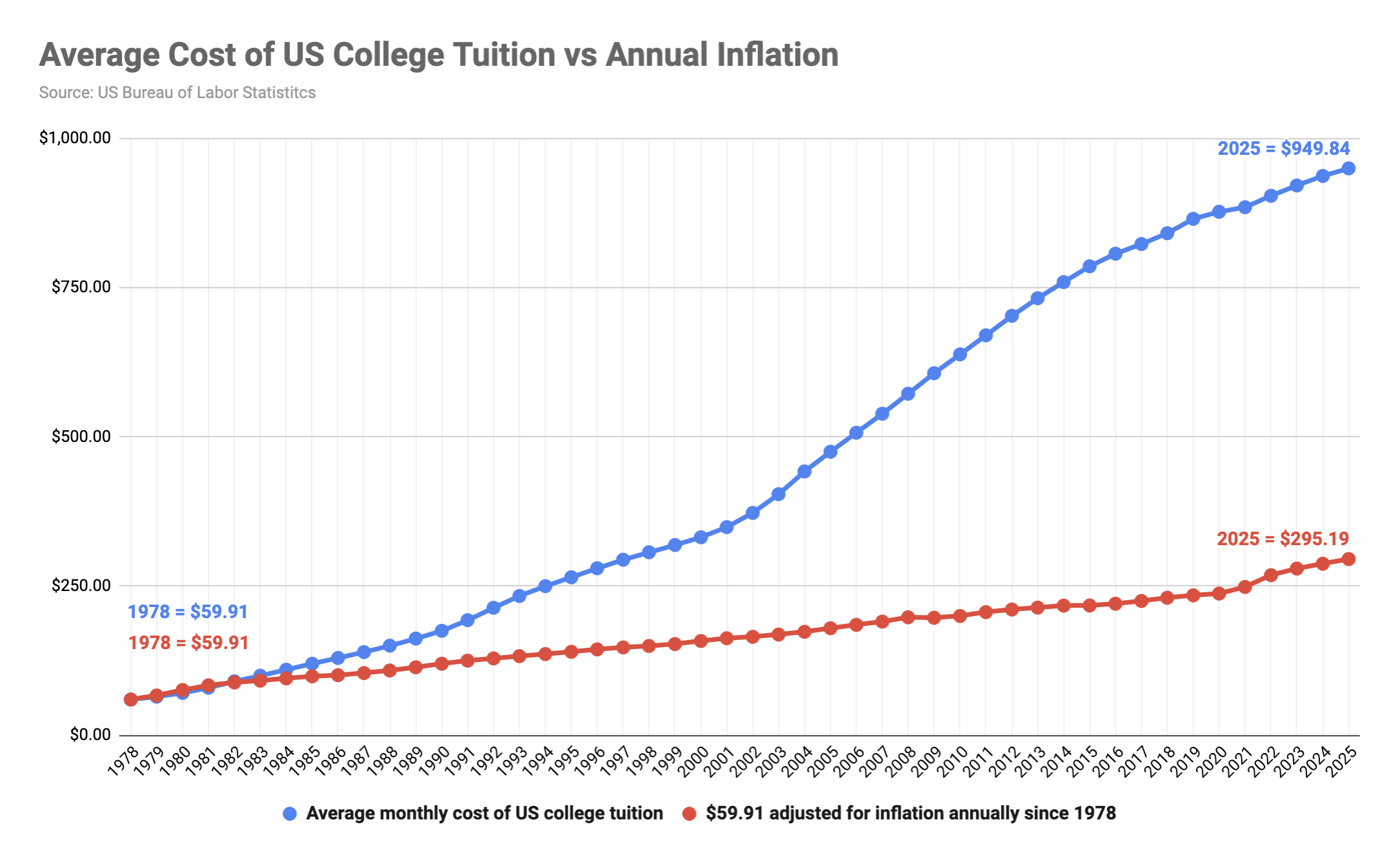 Inflation would be essentially how much would it costs to get a 1978 education in 2025. But that… isn’t how this works. At all.