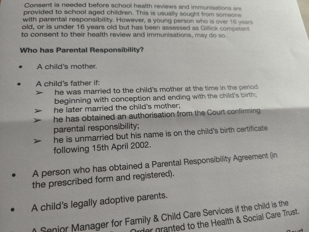 This is from Belfast Trust – I don't recall seeing this before but I might have missed it. What is this nonsense about? I always assumed that as a father, I had inherent parental responsibility.