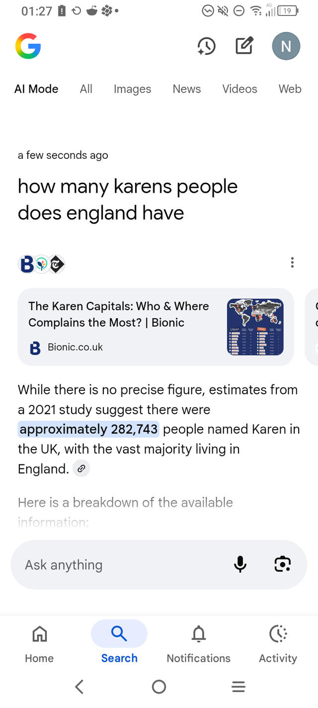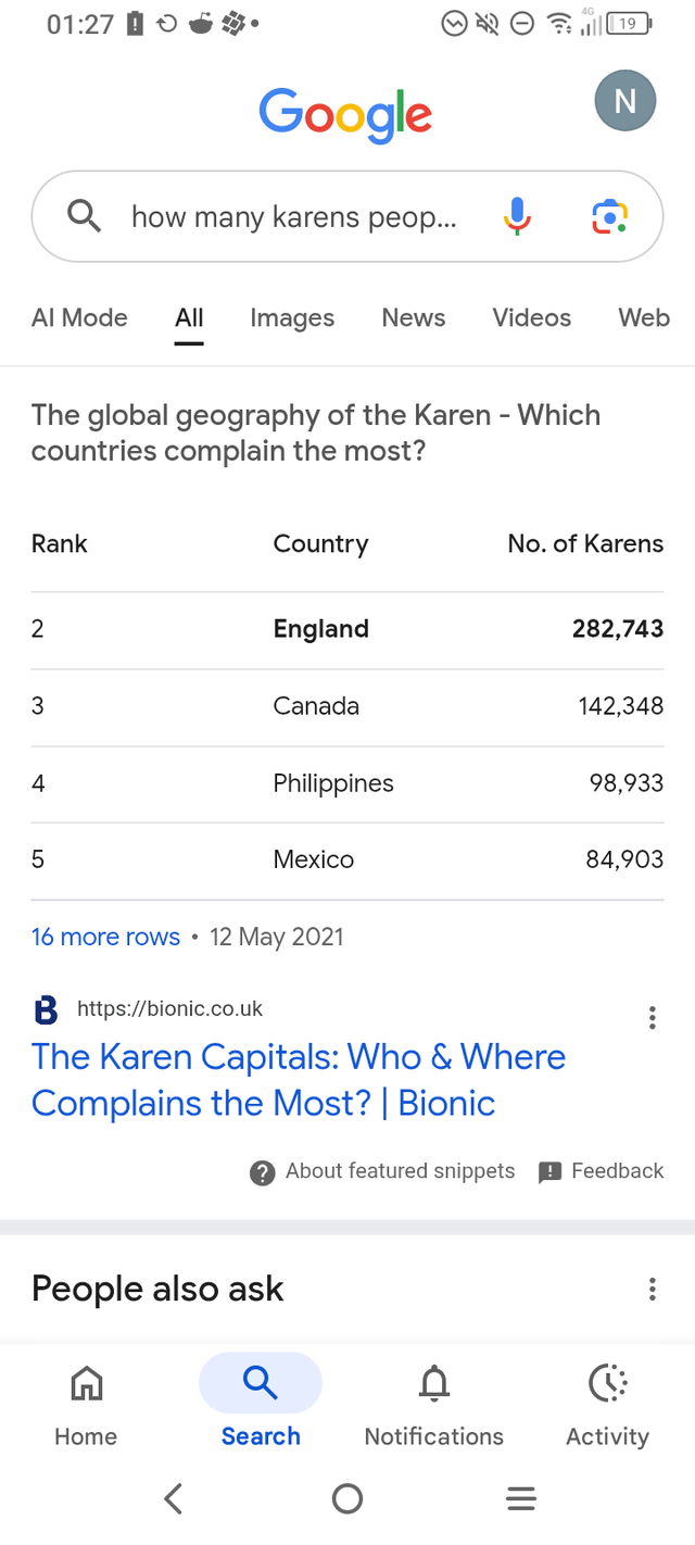 Eak, yikes, heebie jeebies. Fourty. Two hundred n eighty two thousand seven hundred n forty three. This says why Englands people say "Get off my lawn! You criminal!' What? Who asked how many karens England has? Definitely not as many as I thought. What can I say. I am humbled.