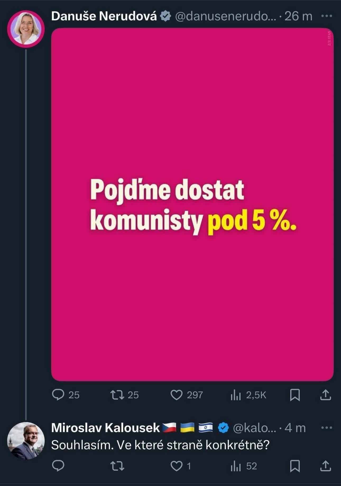 Ne, nevystihl. Žádná strana nemá komunisty, krom snad KSČM, kde i tam je většina plná kapitalistických prospěchářů. Levicová politika není komunismus, i když zdejší chorý mozky, neschopný diskuze s jejich jediným správným pravicovým pohledem na svět, to nechápou.