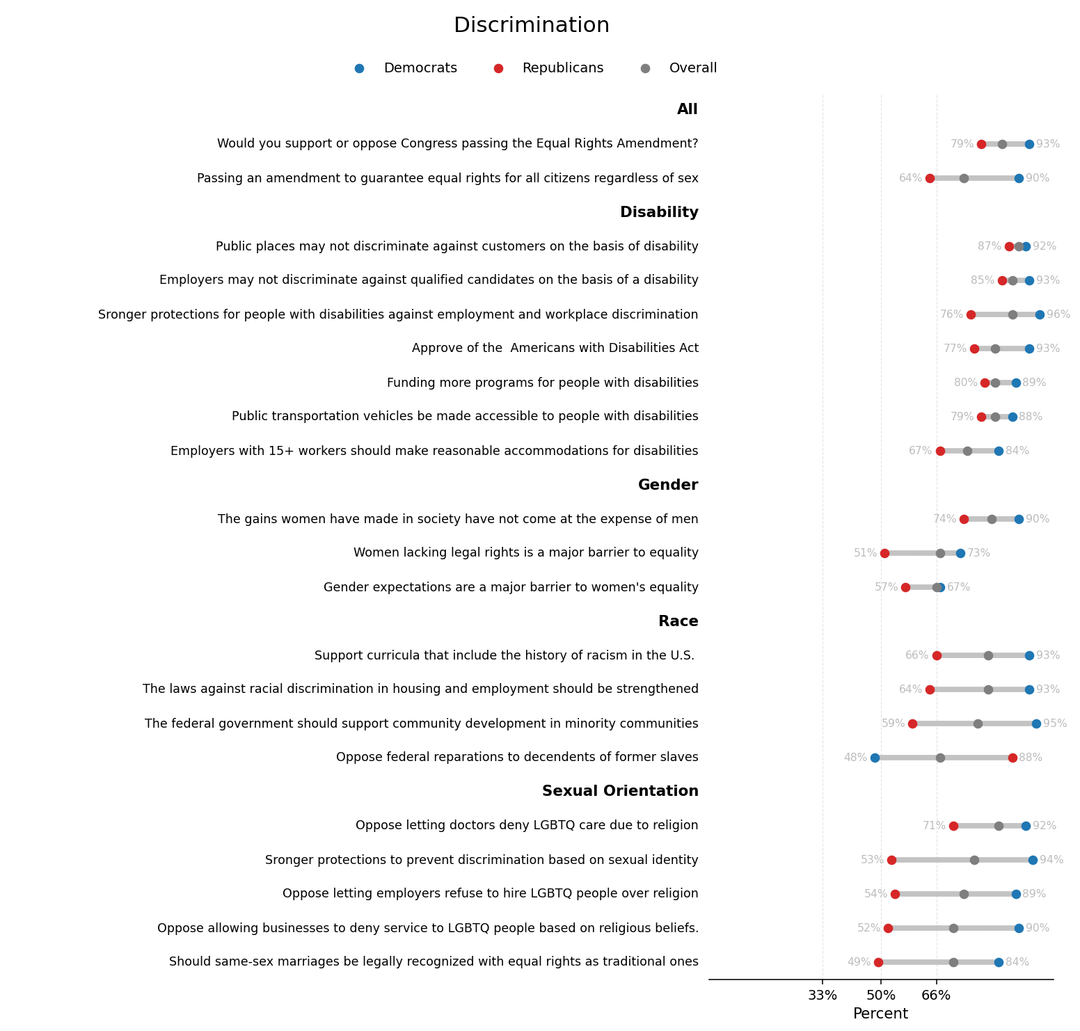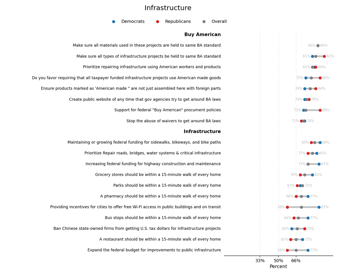 This project was created to try to find areas where Americans agree and are able to get past partisanship. After searching hundreds of polls, 671 questions were found to have at least 66% support. This data has been compiled into the TwoThirds Platform link below.