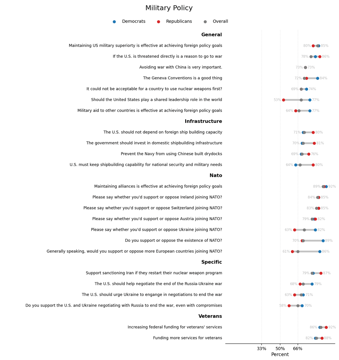 “Increasing U.S. energy production” shows 83% R and 73% overall, with no D dot. The tsv data source has D at 73%, but I can’t figure out how the overall value and one party’s value would be the same (unless R is also that number). **edit**: It’s large numbers of independent respondents. [Here’s the source](https://ygo-assets-websites-editorial-emea.yougov.net/documents/Policy_Support_May_13.pdf) for the energy one. 362 D respondents (73% support), 334 R (83% support), 470 independent (66% support). Weighted average = 73%.