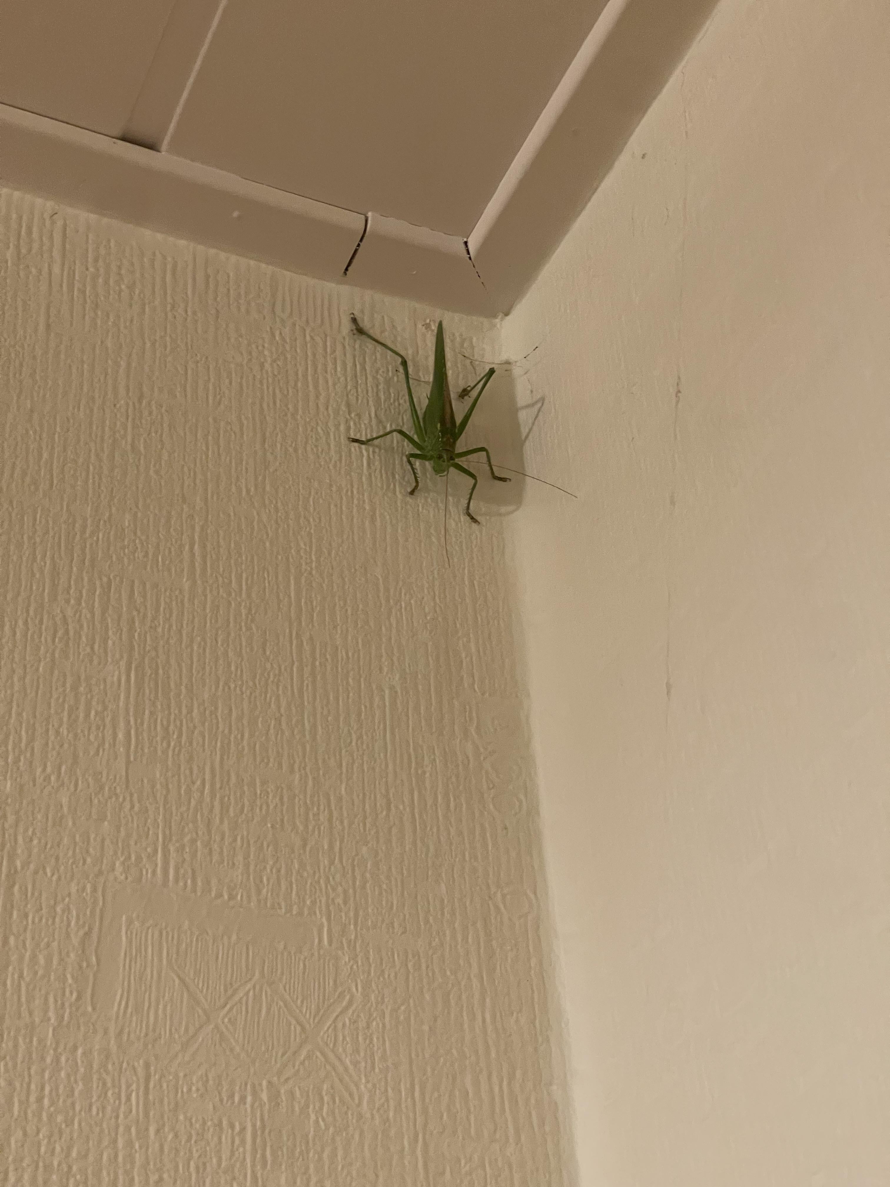 Habe vor ein paar Tagen eine riesige Heuschrecke bei uns im Haus gefunden. Ein Glas hat nicht gereicht, um sie einzufangen. Ich brauchte eine mittelgroße Schüssel. Bestimmt 8 Zentimeter der Körper? Man erkennt die Größe leider nicht so gut auf dem Foto.