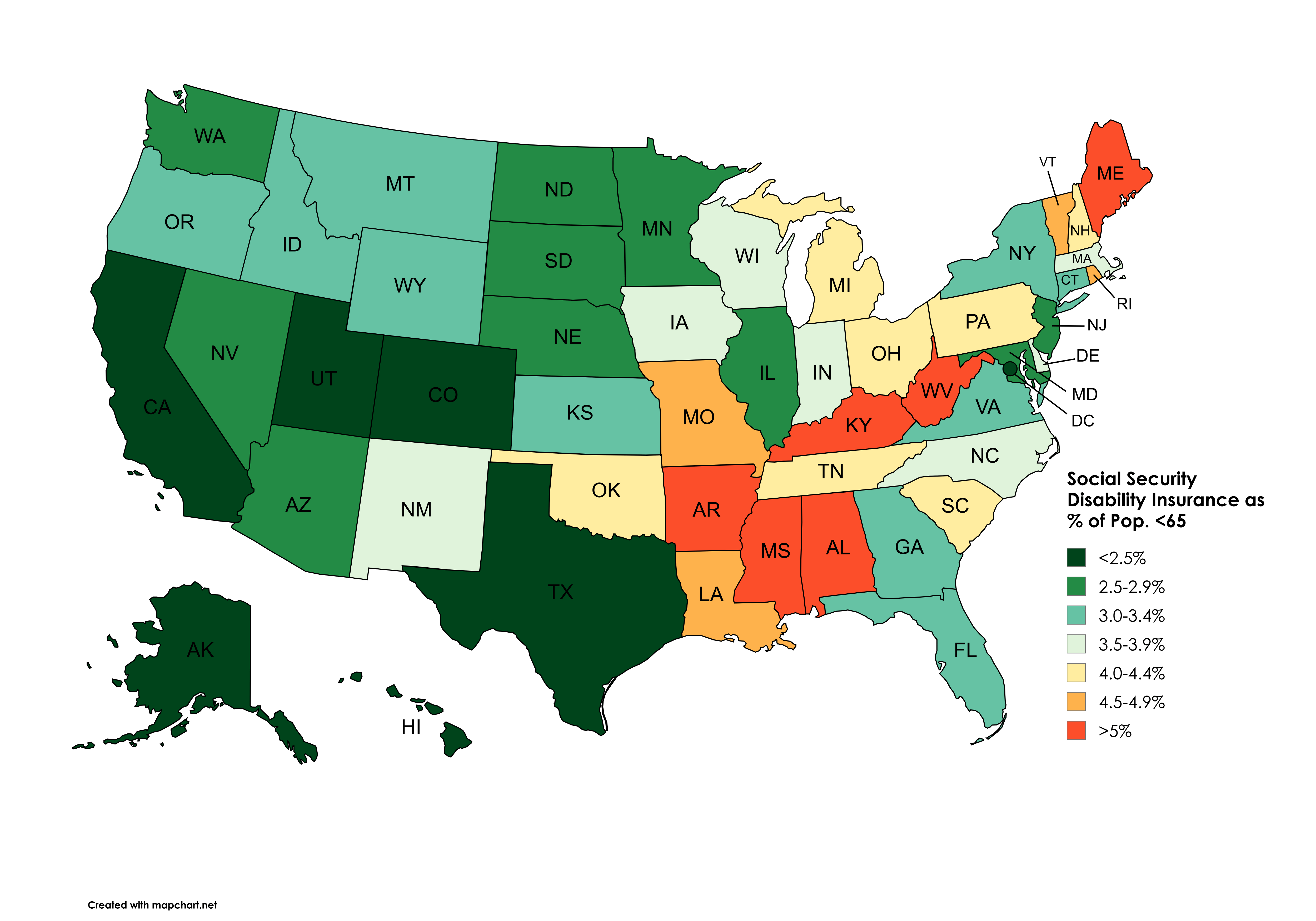 * Maine’s **oldest population*** and **high rural-occupation** base drive disability prevalence.