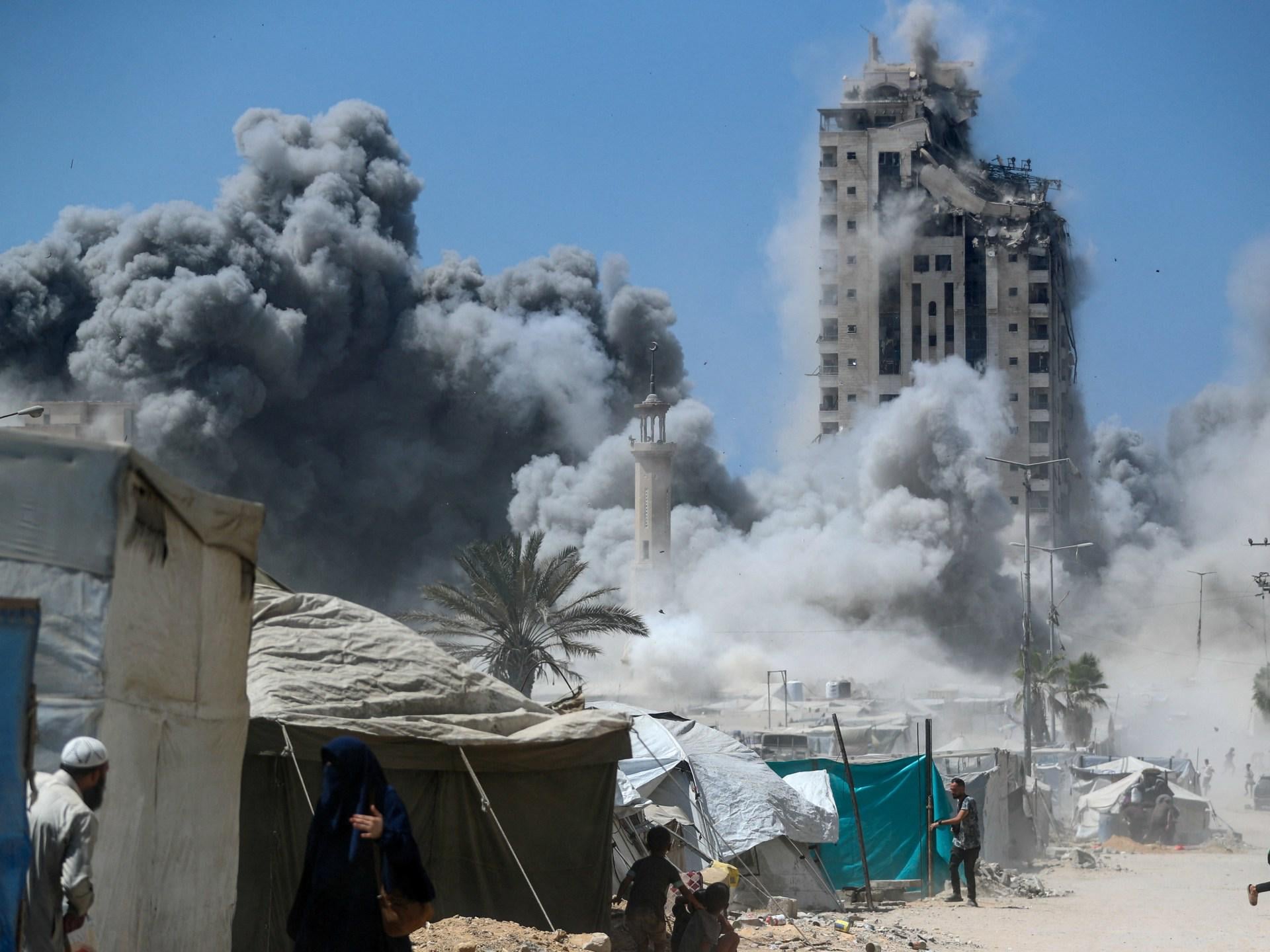 >On Friday, the israeli military ordered people in Mushtaha Tower, a 12-storey building located on the western side of Gaza City and surrounded by hundreds of makeshift tents, to evacuate, and later struck the building, claiming it was “Hamas infrastructure” and was used to plan and carry out operations against israeli forces.