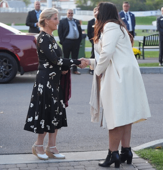 The Duchess of Edinburgh is undertaking a four-day official visit to Alberta from 4 to 7 September 2025, in her role as patron of Spruce Meadows, a show jumping venue. This is her first visit to the country since 2023, marking the 50th anniversary of Spruce Meadows. On September 4, the Duchess attended the Internationalists Dinner at the Fairmont Palliser Hotel in Calgary, Alberta. On this occasion, she wore a floral embroidered linen dress by Erdem.*