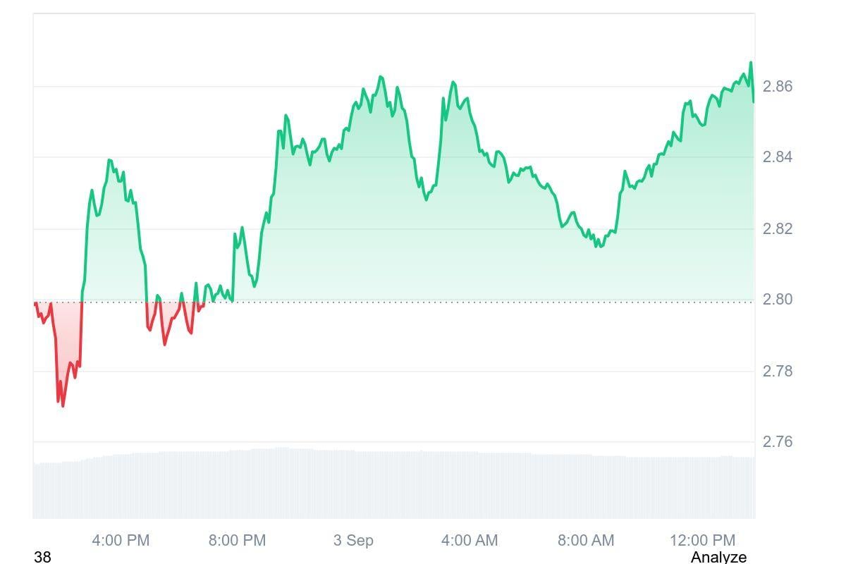 A close above that threshold could confirm a breakout and open the path toward $5, a level representing a 77% climb from current prices. Traders note that the 50-day moving average at $3.08 and resistance points at $3.40 and $3.66 will be key hurdles before such a move.
