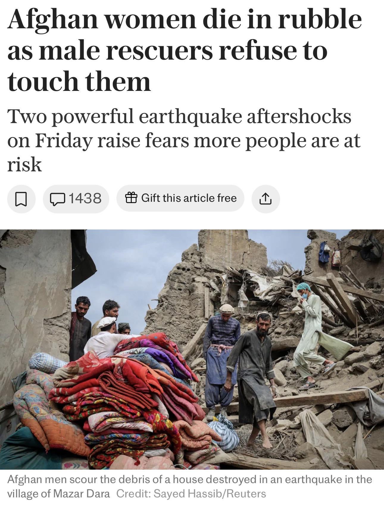 Afghánské ženy umírají v troskách, protože se jich mužští záchranáři odmítají dotknout; buďme rádi za naše sekularizované hasiče! Pošle Evropa (včetně Česka) pomoc do Afghánistánu?