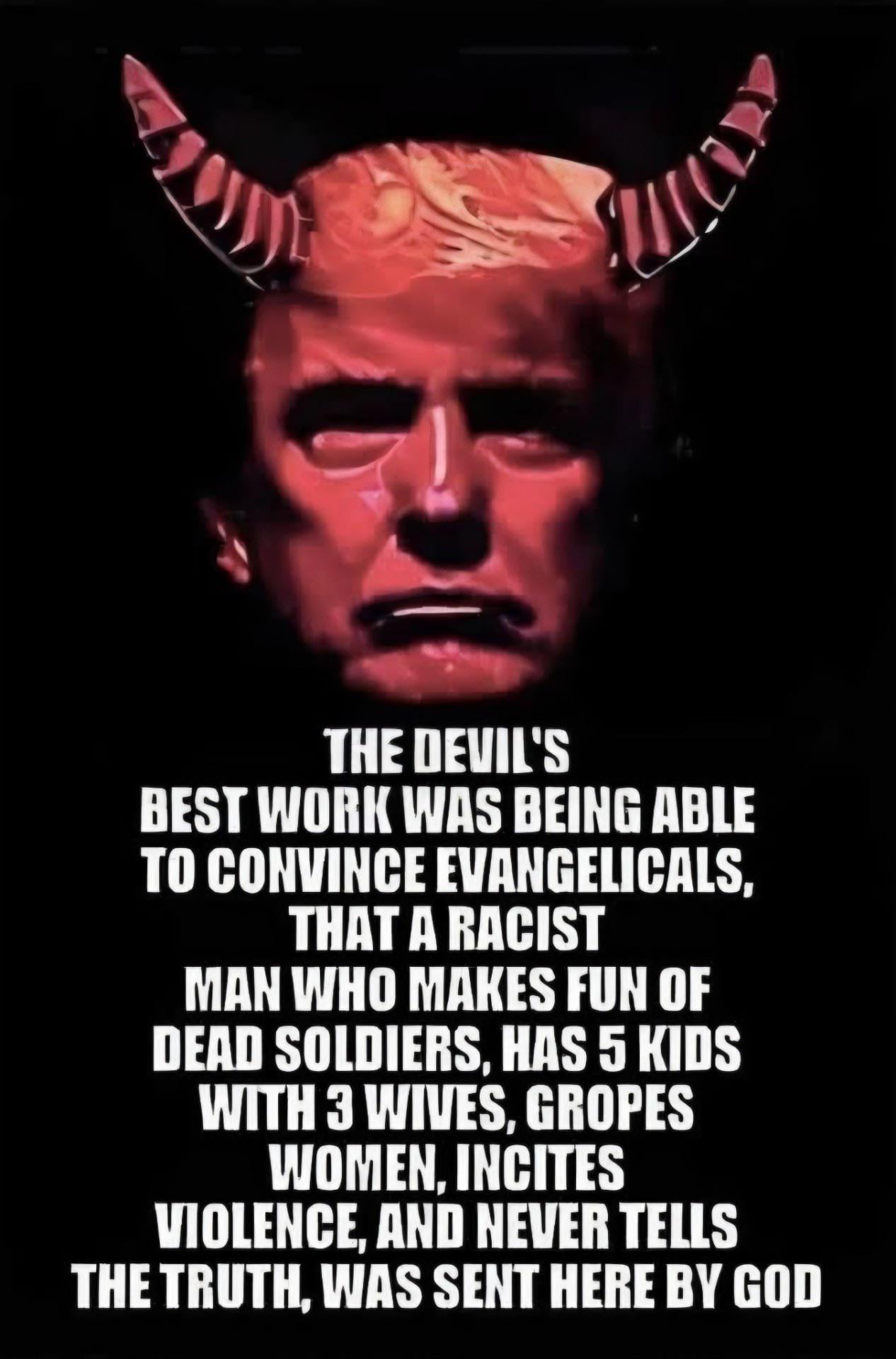 I wish y’all would quit comparing bad people to Satan. He’s actually kinda the good guy in the story. He didn’t drown a whole planet, or kill all the first born sons or send bears to kill children. He just wanted to out god for his crimes against humanity.