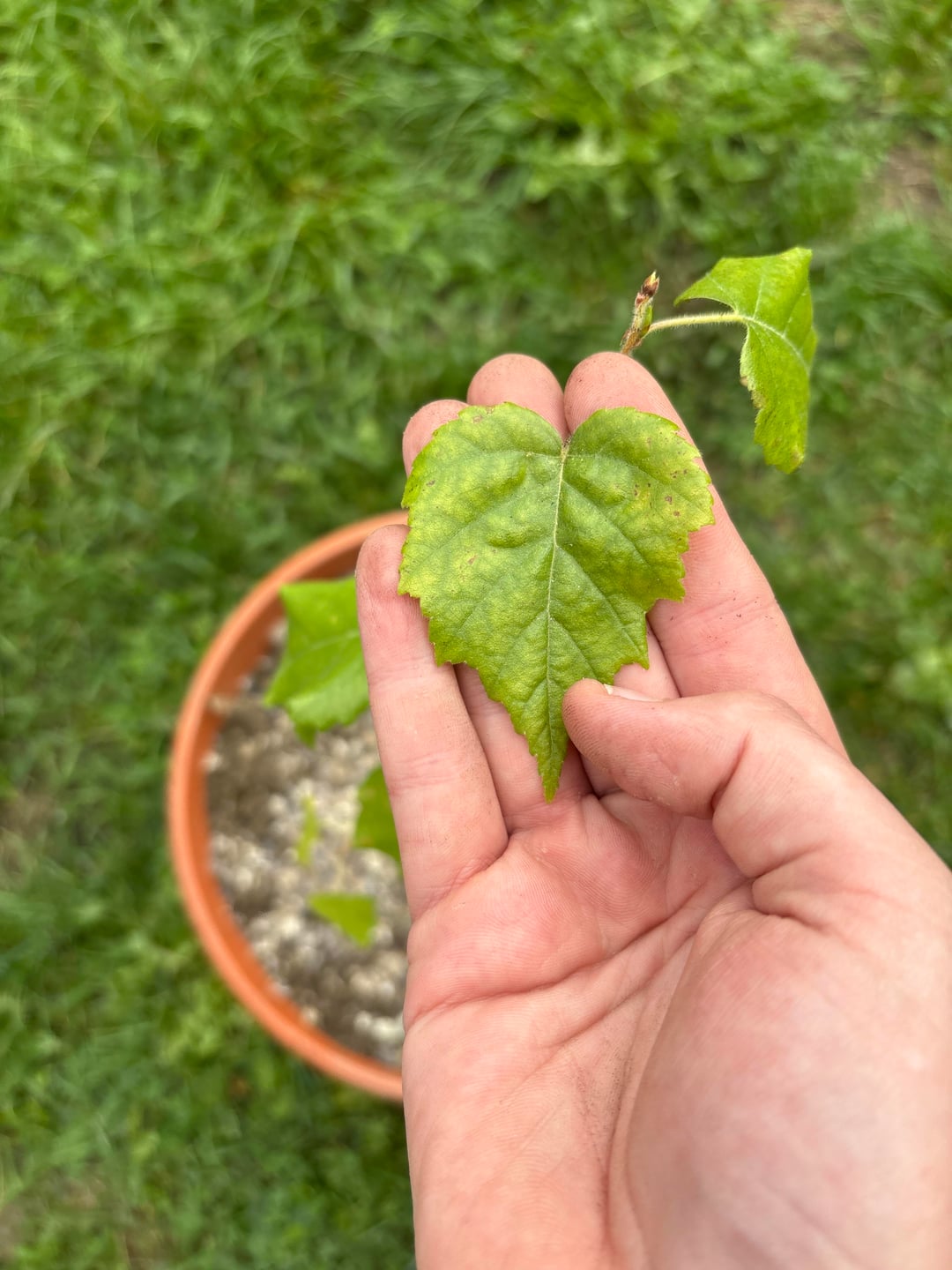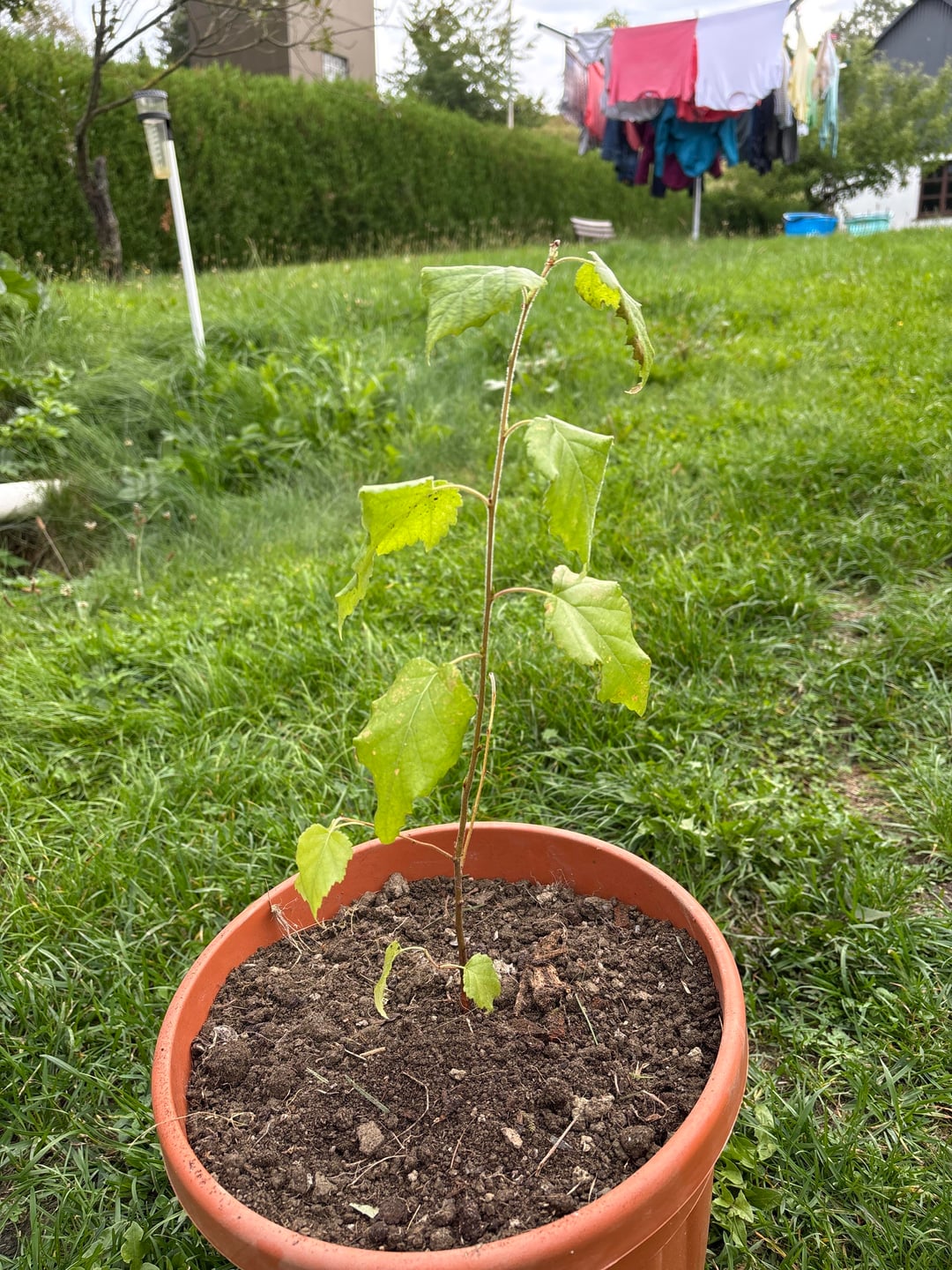 Ursprünglich wurde mir dieses Bäumchen als Birke geschenkt. Hier in der Gegend ist es üblich zu Pfingsten seiner Verehrten eine kleine Birke zu „stecken“. Normalerweise sind die größer und werden abgesägt und an das Haus gelehnt. Ich habe jedoch ein Bäumchen im Topf bekommen, damit es weiter leben darf. Mittlerweile ist sie ein bisschen gewachsen und ich bin mir unsicher ob es wirklich eine Birke ist. Die Blätter sind flauschig und das passt nicht zur Birke. Könnt ihr mir helfen?
