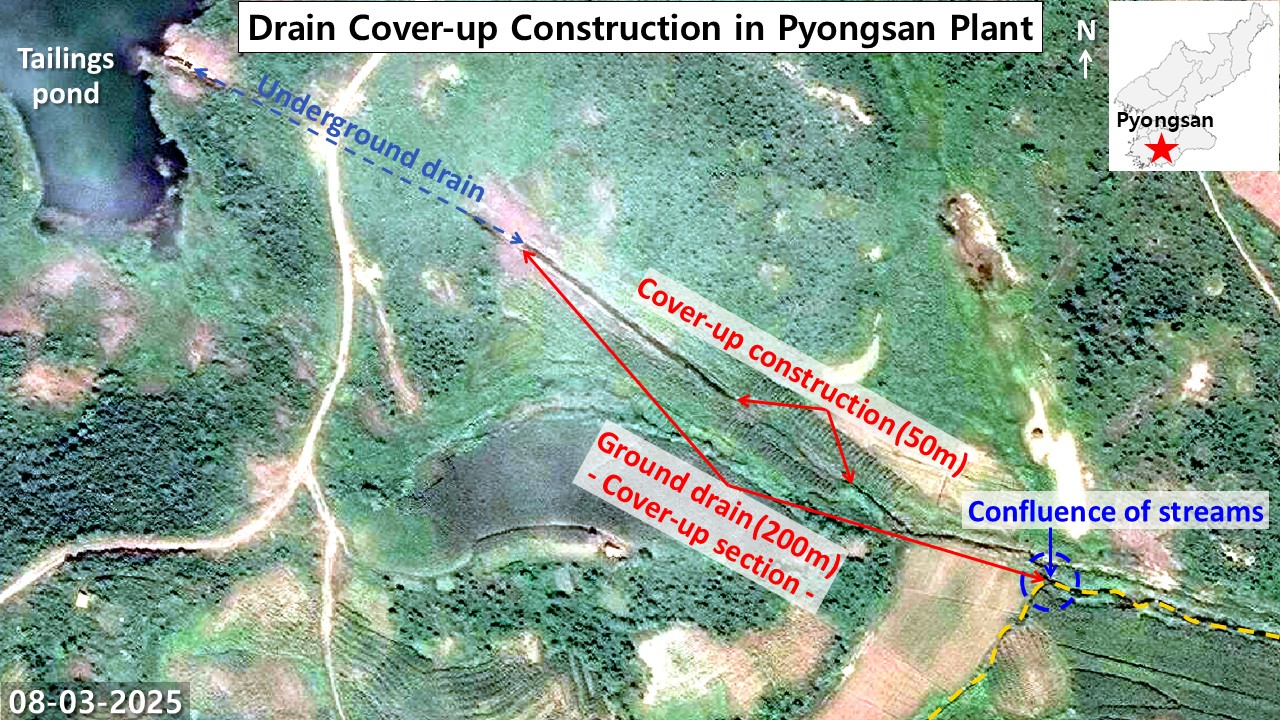 North Korea has decided to respond by redesigning the area around the Pyongsan facility and moving the drainage canal underground. Consistent with these reports, recent satellite images show that work is underway to conceal the canal.