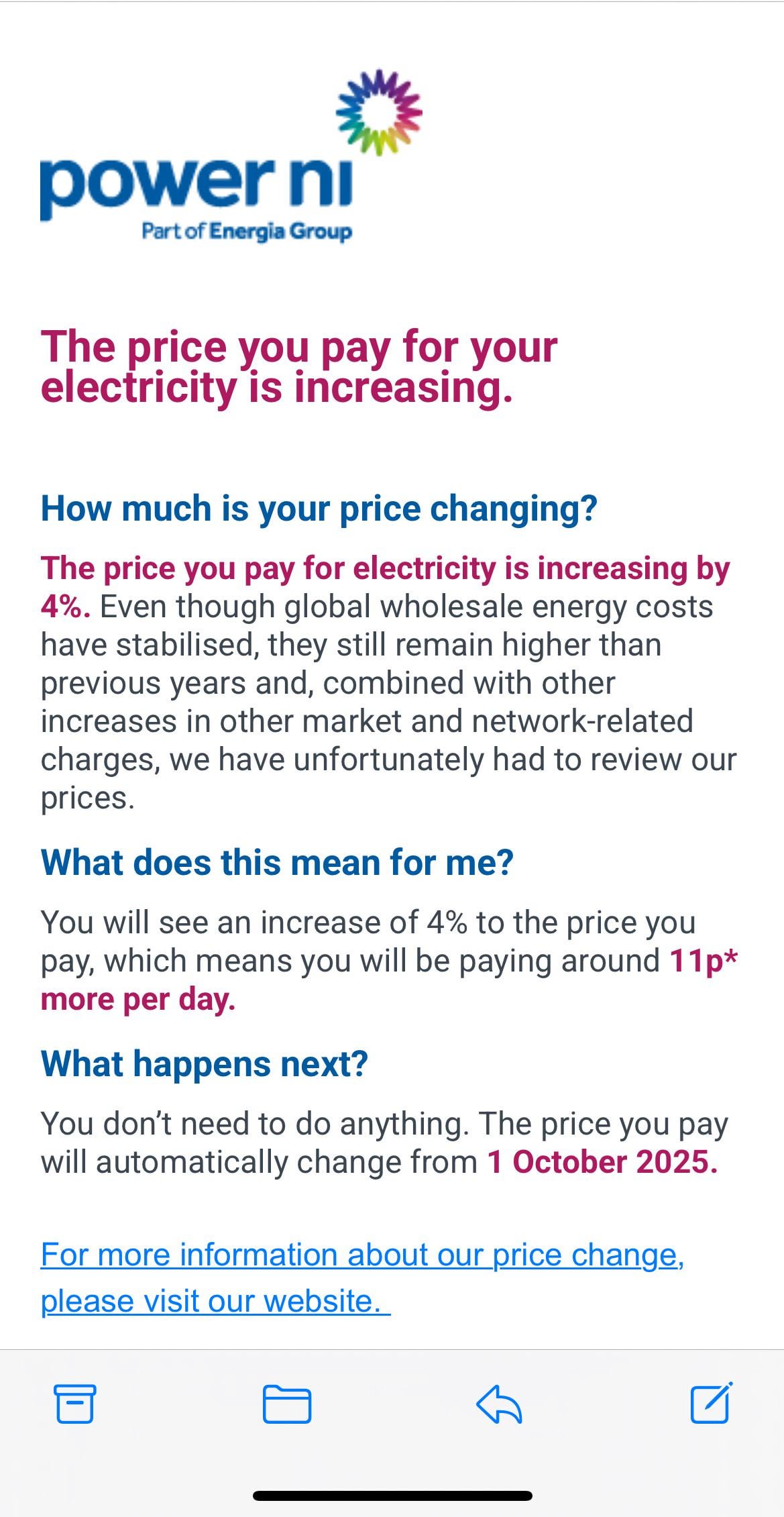 Increase by 4% for winter then they will drop it by 2% in may saying your getting savings then increase it by another 4% in winter. Energy companies need to be held accountable for their record profits while people struggle to heat their homes and keep the lights on.