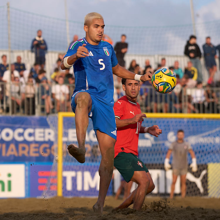 Splendida prova di forza della Nazionale di Beach Soccer, che si impone 6-3 sul Portogallo, campione d’Europa, nella seconda giornata del Gruppo A della Superfinal della Euro Beach Soccer League, in svolgimento fino al 14 settembre alla Beach Arena ‘Matteo Valenti’ di Viareggio, qualificandosi alle semifinali con un turno di anticipo.
