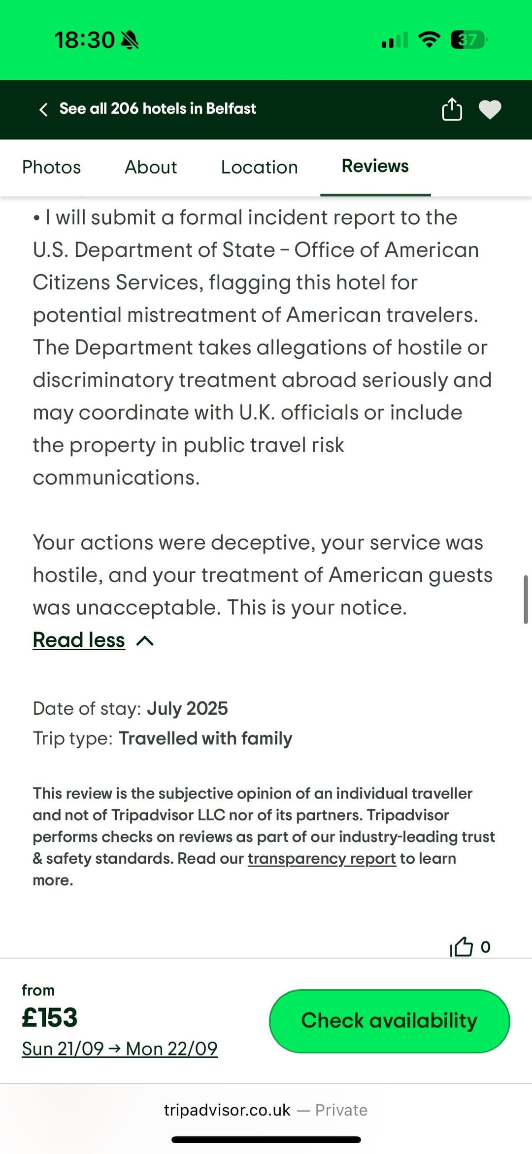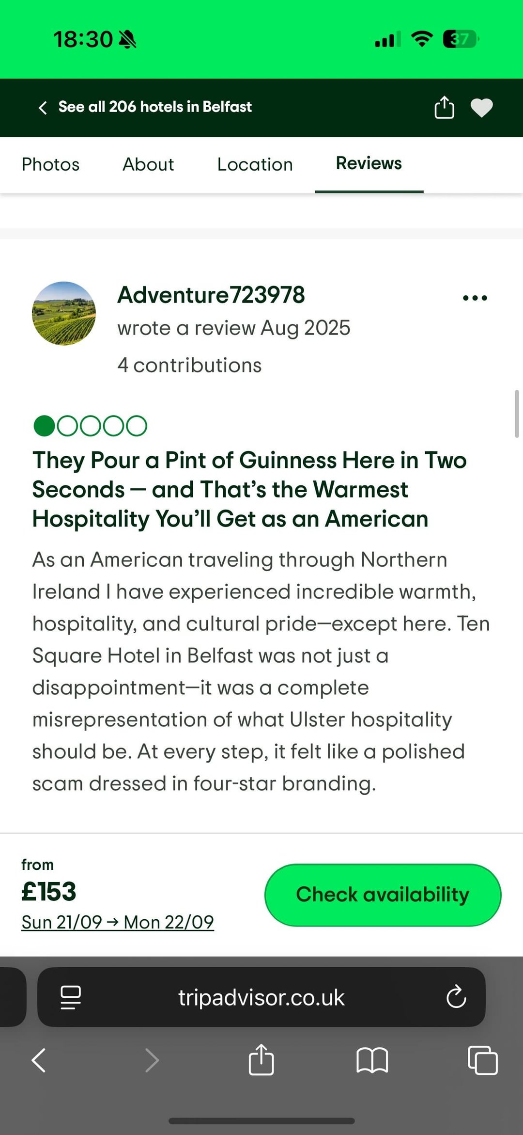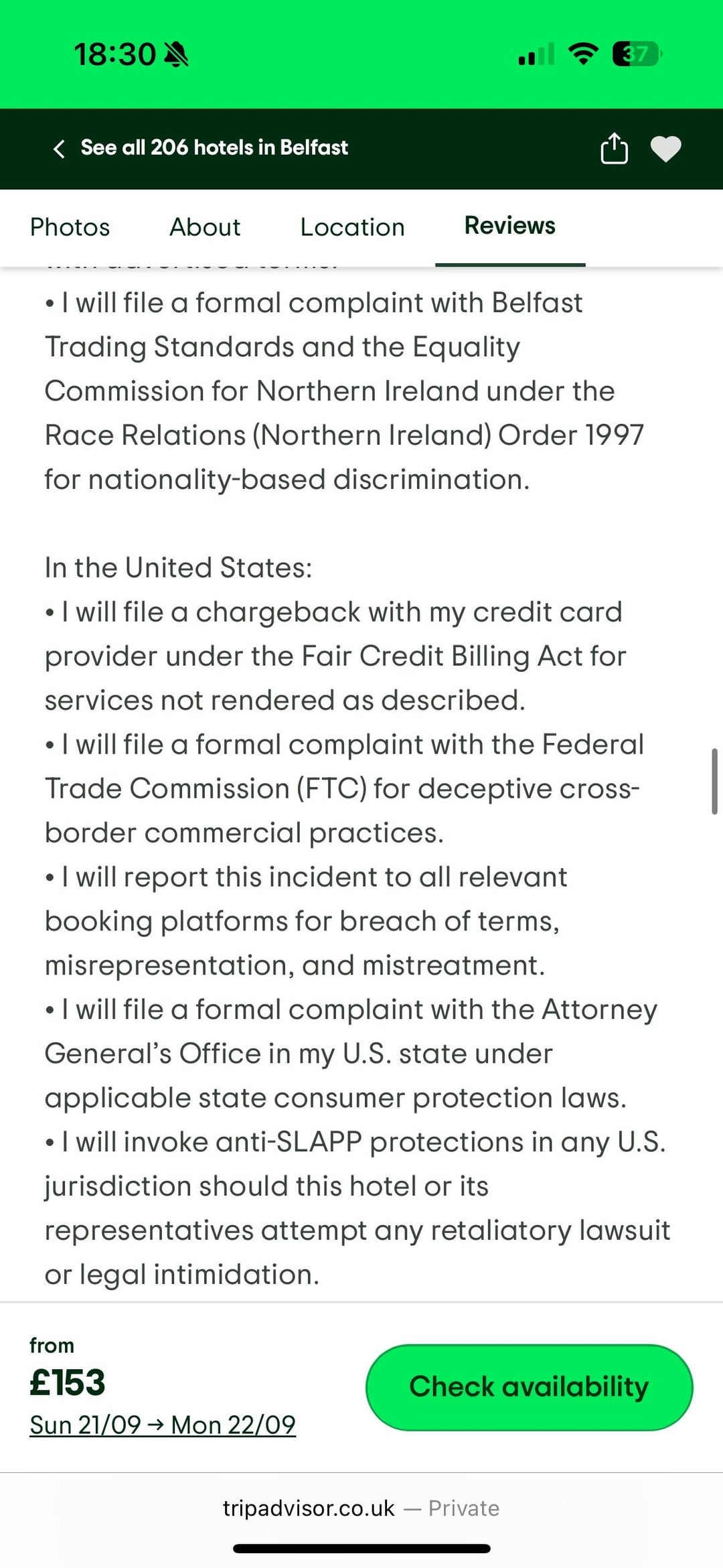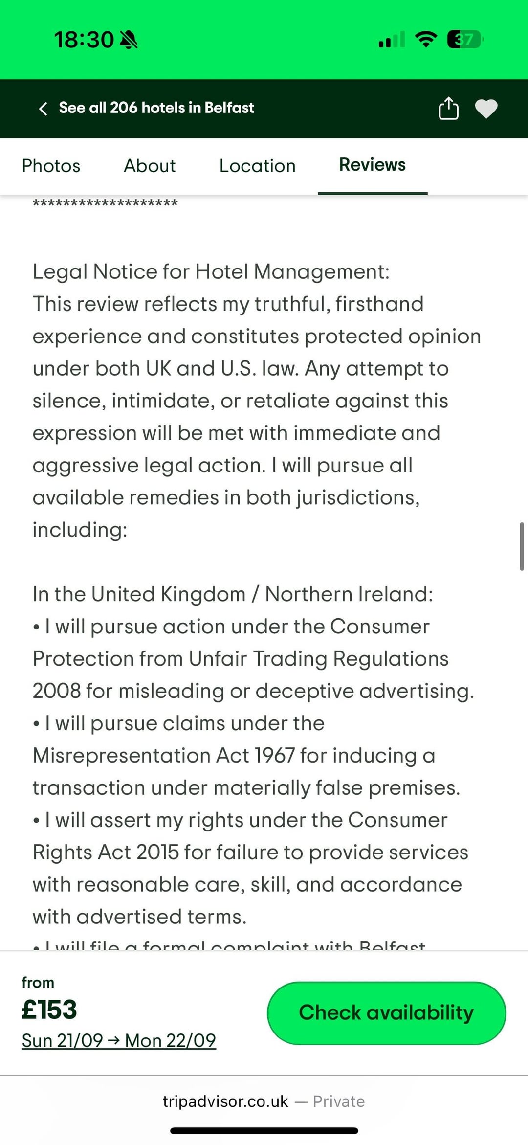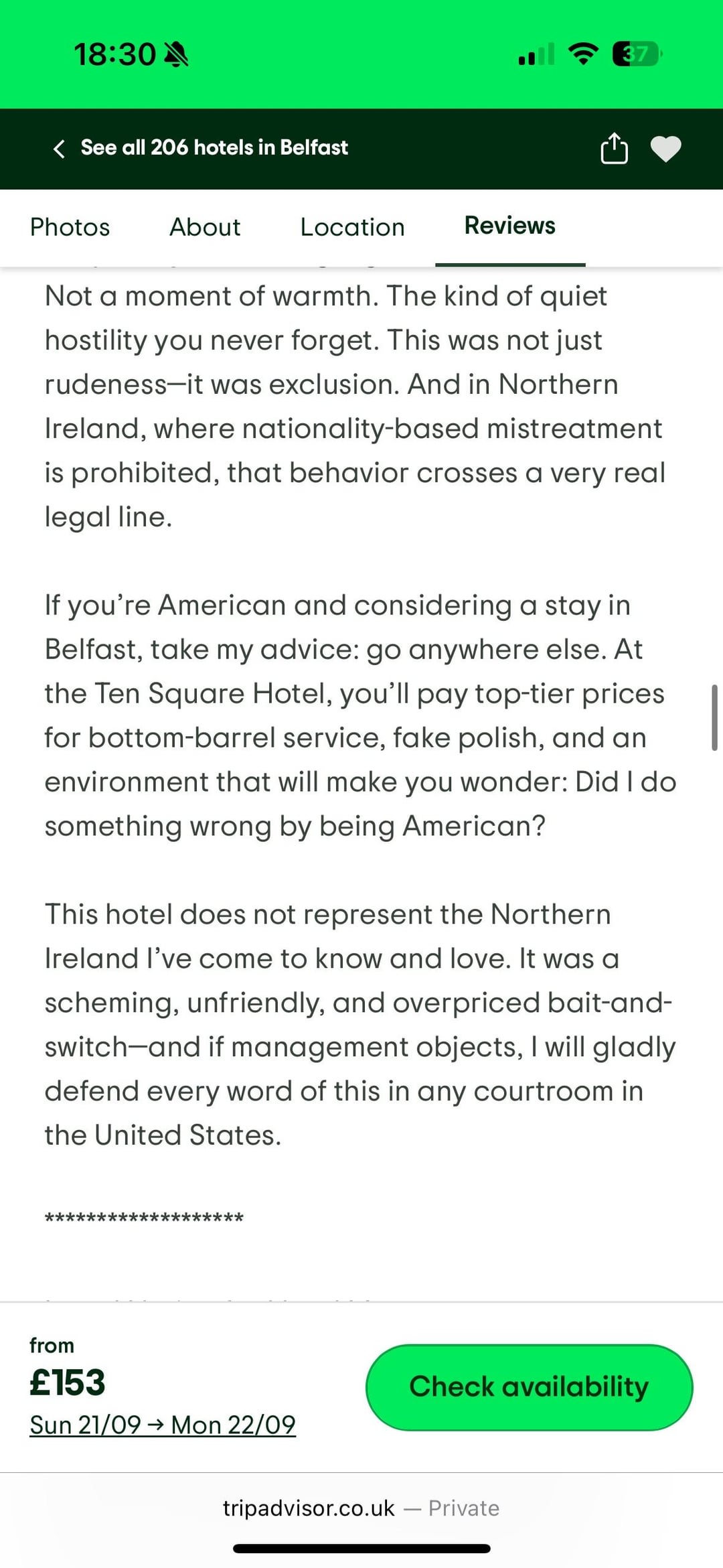 Found this while looking at hotel reviews for Ten Squared in Belfast just keeps getting better as you read, 🤣