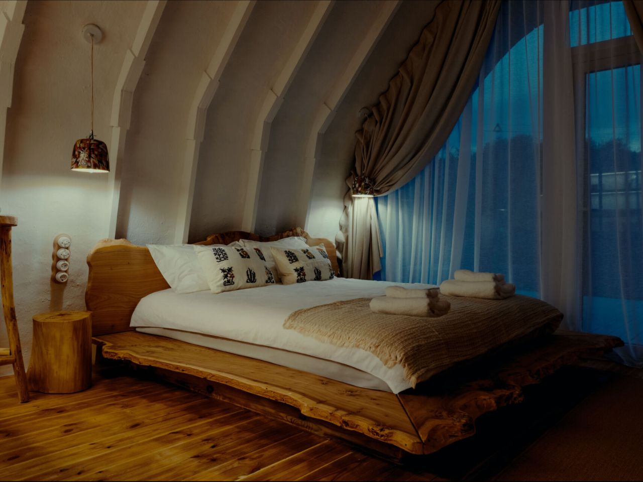 If the exteriors blend into the landscape, the interiors celebrate the human hand. Each cabin’s beds, shelves, and cabinetry were built by Lemnaria, a local workshop specializing in timber craft. Handmade furniture ensures the spaces maintain a tactile connection to tradition, while subtle variations mean no two interiors are alike.