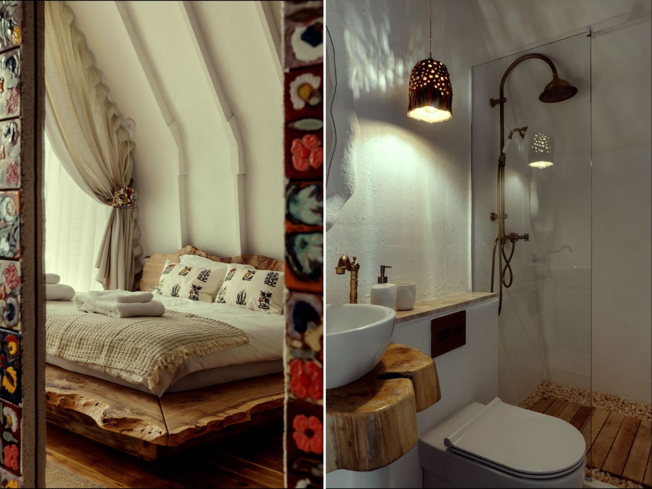 Even the bathrooms extend this narrative of craft. Ceramic artist Eugenia Burlacenco created bespoke lighting fixtures and decorative accents, infusing each bathroom with artisanal detail. These handmade touches elevate the most functional spaces into intimate encounters with artistry, grounding the architecture in local cultural expression.