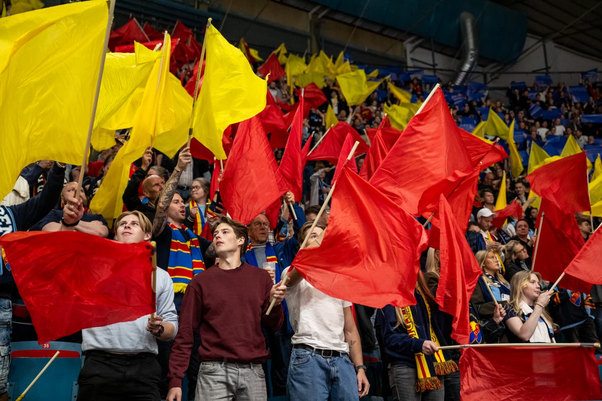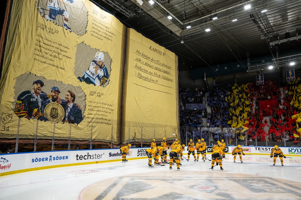 Djurgården bjöd på ett mäktigt tifo vid återkomsten till SHL. ”Grattis Sverige” stod det på en av banderollerna.