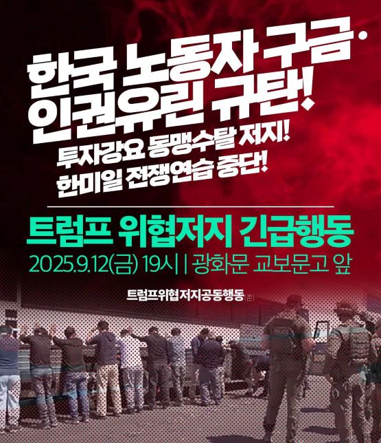 The Korean Confederation of Trade Unions (KCTU) also held a rally near City Hall Station at 3 p.m. on September 13, arguing that “U.S. immigration authorities unlawfully detained large numbers of Korean workers at local factories, while the Korean government, preoccupied with appeasing Washington, failed to properly protect its own people.” (Yonhap)