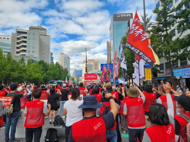 Earlier in the afternoon, the Korean Confederation of Trade Unions staged its own rally near City Hall. Union leaders accused U.S. immigration officers of “unlawfully abducting” Korean workers and castigated Seoul for failing to stand up forcefully to Washington. They coupled their criticism with a domestic demand: stronger protections for platform workers and subcontractors, whom they argue remain excluded from labor law safeguards.