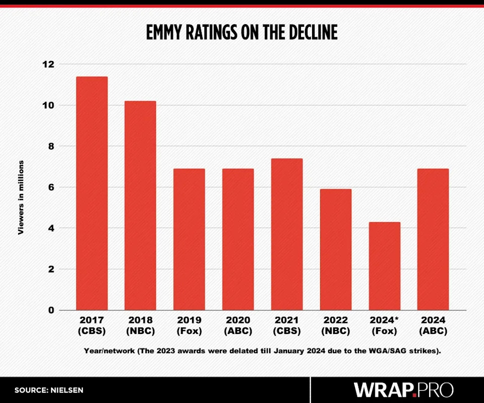 Award-show ratings have remained on a downward arc, which reflects the gravity dragging at all of linear television, as well as the lingering after-effects of COVID and strike-disrupted years.