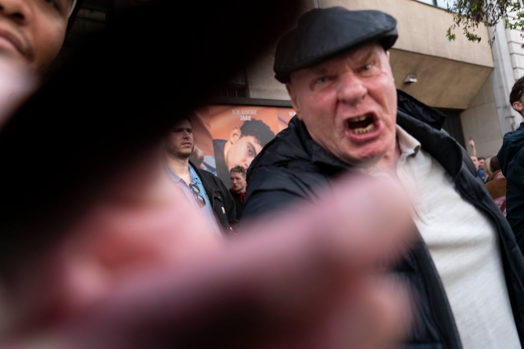 I saw that first guy at the protest yesterday. He was in a blind rage, crying, fainting. He kept getting up and trying to run at the Unite side. He had to be held back by 3 or four other guys who were trying to snap him out of the trance he was in. Eventually, they managed to drag him away. It was horrible to watch someone in such a state of rage and despair.