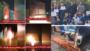 On Thursday, September 11, 2025, Iran’s rebellious youth carried out 15 fiery acts of protest in response to the plunder of workers’ and laborers’ earnings. They struck symbols of the regime’s corruption and crimes in Arak, Alborz, Qazvin, Kerman, Kermanshah, Ilam, Sarbaz, Rasht, Isfahan, and Mashhad. Supporting the oppressed workers at the Arak Aluminum Company, the Abad Rahan Company in Bandar Abbas, the Iranian Offshore Oil Company in the Sirri region, and the Aghajari Oil and Gas Company, they set fire to banners of regime supreme leader Ali Khamenei and regime founder Ruhollah Khomeini. They also targeted the regime’s centers of fundamentalism, plundering, espionage, and suppression as follows: