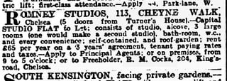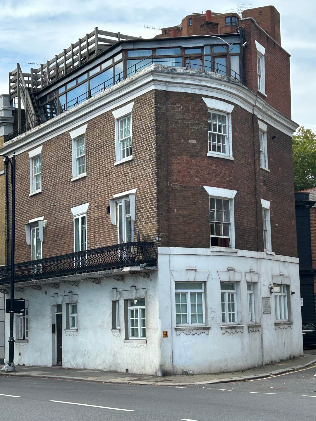 Within months the old pub reappeared as Rodney Studios, 113 Cheyne Walk a self-contained artist’s flat with roof garden, £65 a year (image 10). Through the rest of the century it remained residential. Today the building, once alive with pints, fists, and gossip, shows almost nothing of that past… though if you study the brickwork carefully, you might just spot faint scars where the pub sign once hung, more than a hundred years ago (image 11 and 12).