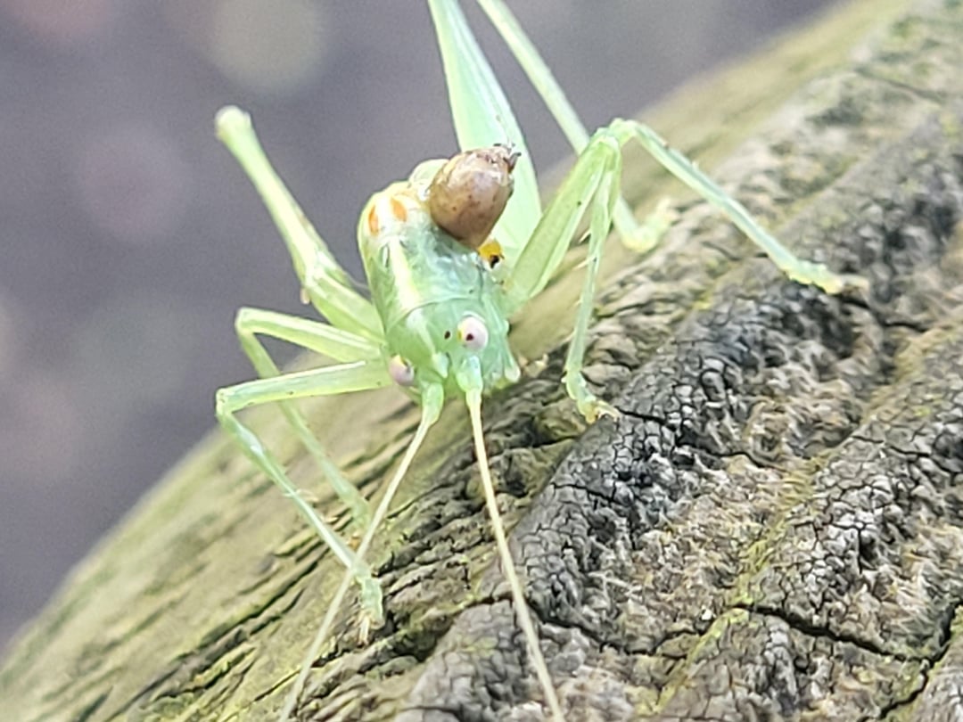 Das ist ein Heupferd Und meine Vermutung ist, dass das eine Pilzinfektion mit einem cordycepse sein könnte. Weiß nicht ob’s so richtig geschrieben ist… Heißt glaub ich auch irgendwas in deutsch wie Keule…