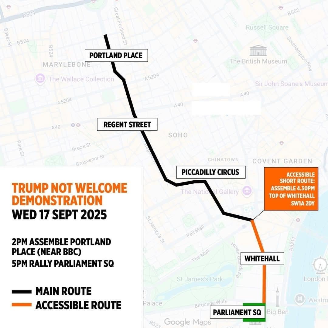 Here's is the route and info for the march tomorrow, if anyone is interested in attending. He will be in Windsor (as there are renovations at Buckingham Palace) but we can still turn up and make a statement in London. Various groups are taking part but you can find all the information on Instagram @ukstoptrump.
