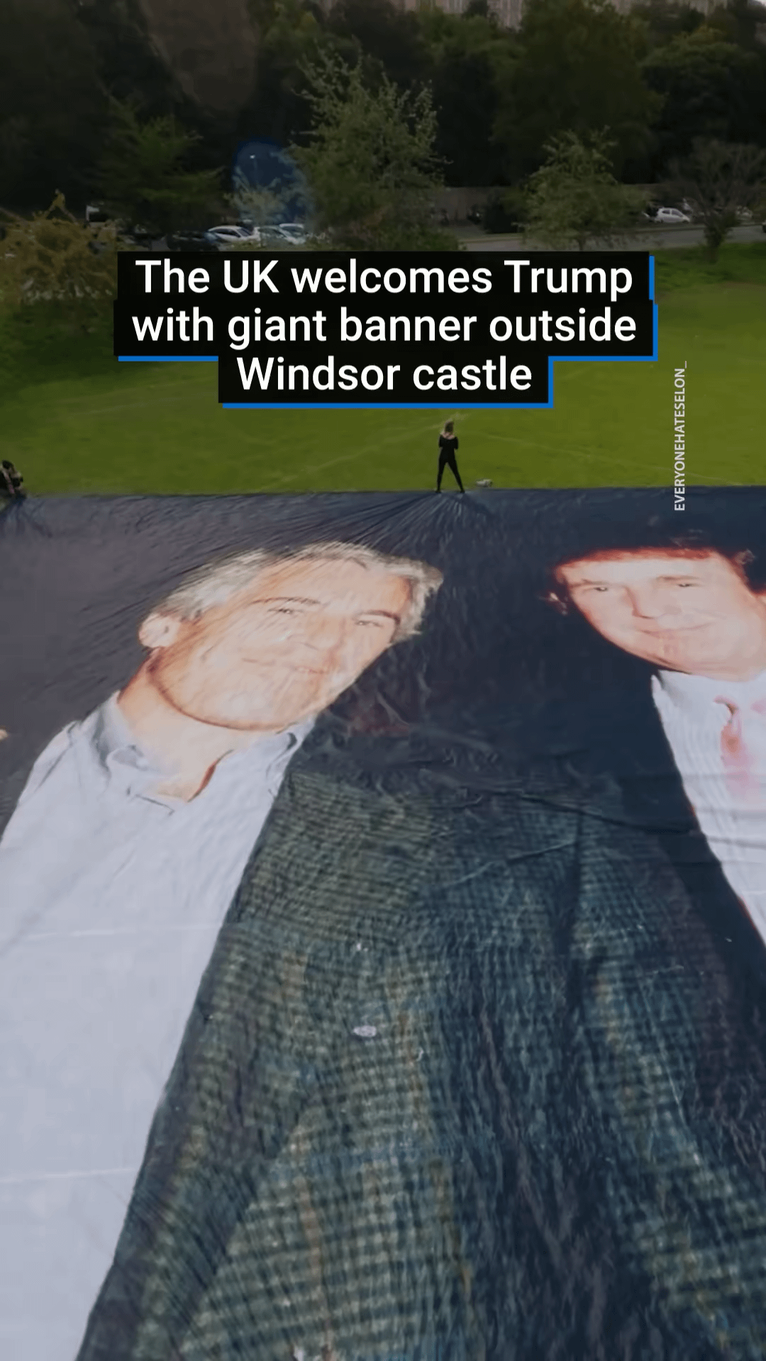 The (Incredibly based) UK welcomes Donald Trump’s state visit by rolling out the world’s biggest photo of the President with convicted pedophile Jeffrey Epstein outside Windsor castle