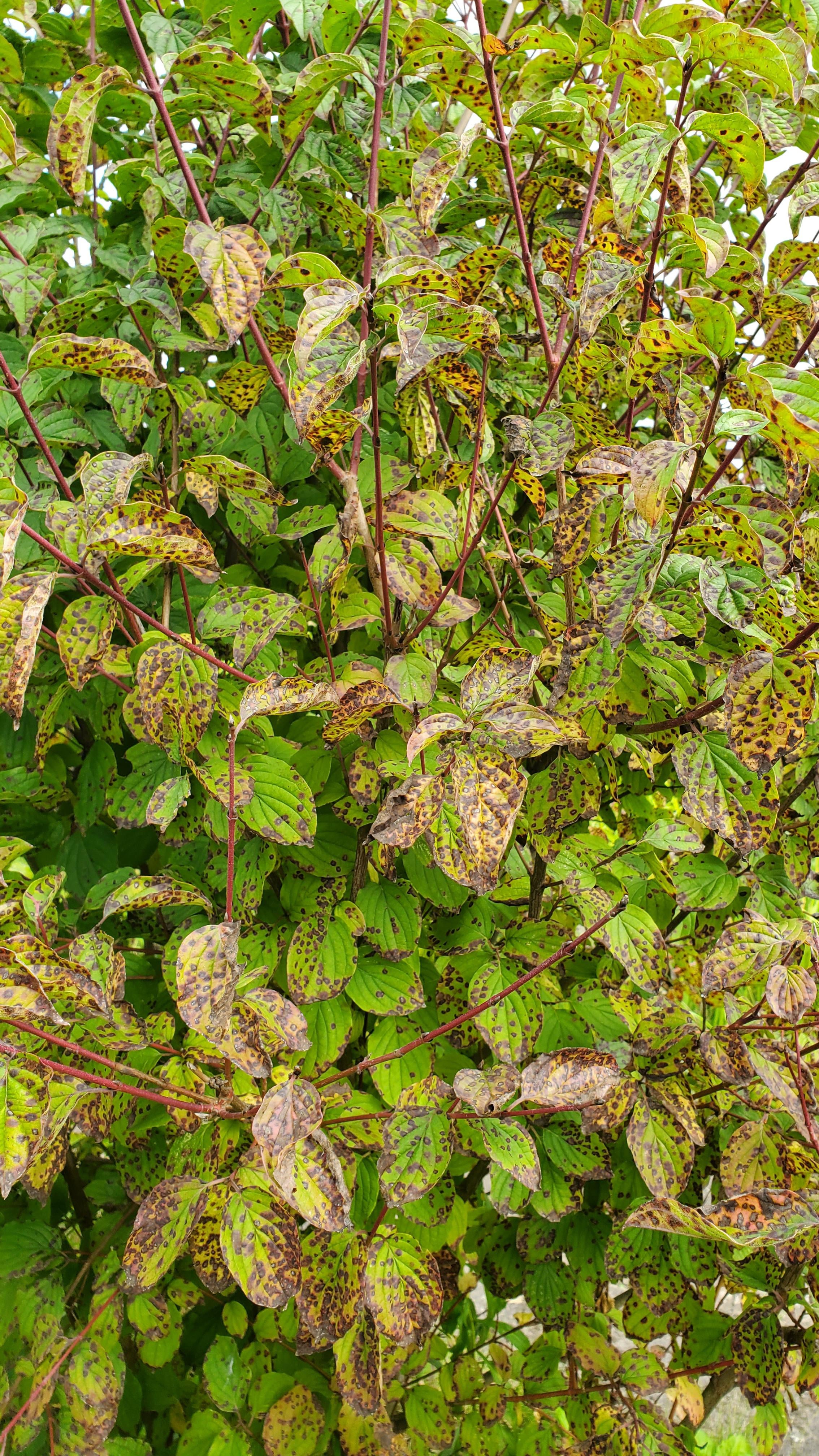 2. Die Punkte werden wahrscheinlich irgendwelche Pilze oder Bakterien sein weil das Laub bei dem häufigen Regen und geringerer Temperatur nicht ordentlich abtrocknet. Ist aber ganz normal und im Frühling ist alles wieder gut.