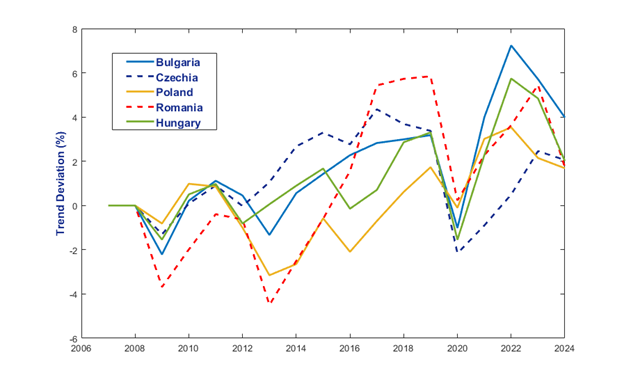Figure 5: Cyclical developments for GDP per capita at purchasing power parity in Central and Eastern Europe. Source: EUROSTAT, own calculations