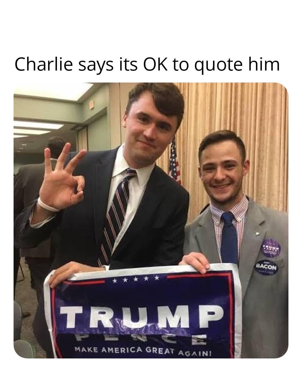 Wait isn’t that a gang sign? Pretty sure Charlie is throwing up a gang sign. Maybe he’s the radicals causing violence everyone has been talking about.