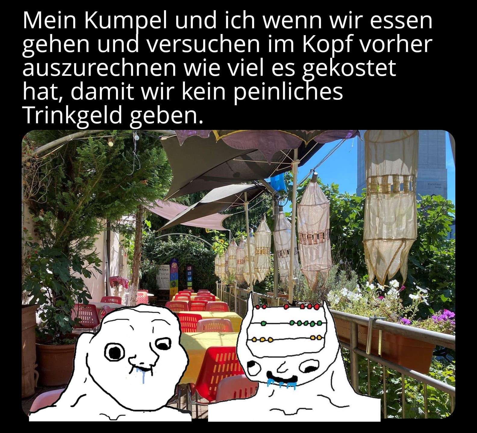 Stell dir vor du machst dir Gedanken ums Trinkgeld. Lol