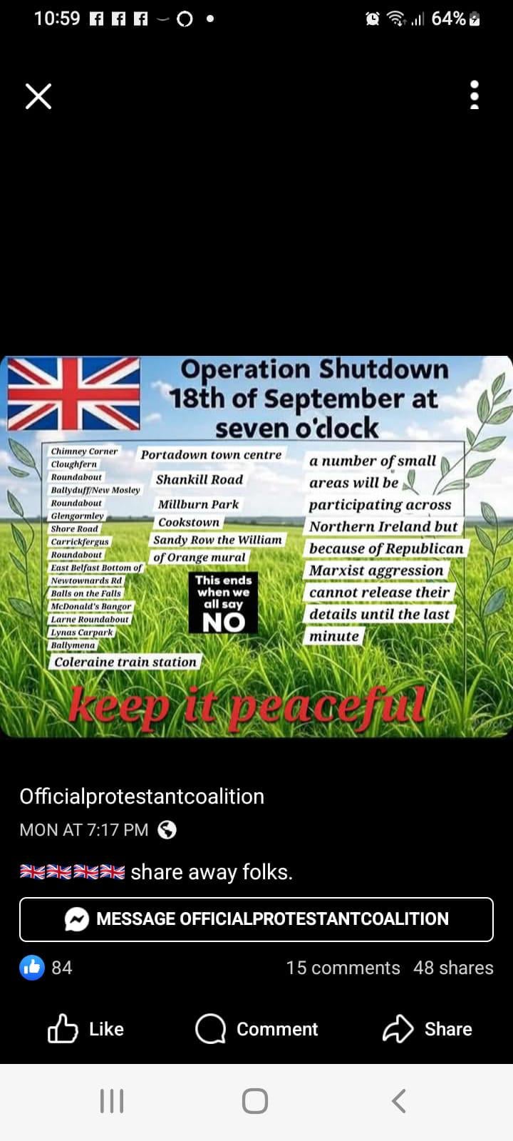 Never seen worse, it’s shameful. Not even any kind of reason to it at all. How does that address the “legitimate concerns” (read pure racism), that they talk about? Let’s shut down a town centre when everything is already closed, a car park, a train station and a Maccies. What a revolution.
