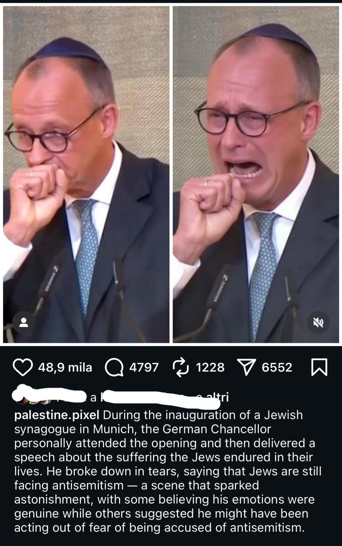 I don’t believe anything of what that guy says or does. First he gets overly friendly with the rightwing AfD (who hates almost everyone, including, of course, jews) and then, in front of some camera, he sheds some crocodile tears when he thinks it’s appropriate. Despicable person.