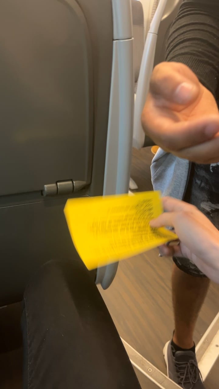 Had the experience, with same approach from him. I guess the only option is to call securail the moment you see him entering the train car and starting giving out the papers