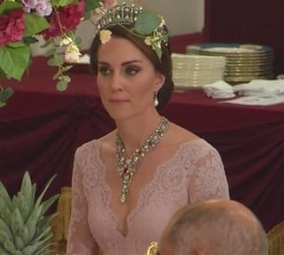 Dutch royals visit – dress by Alexander McQueen / Lover’s Knot Tiara
