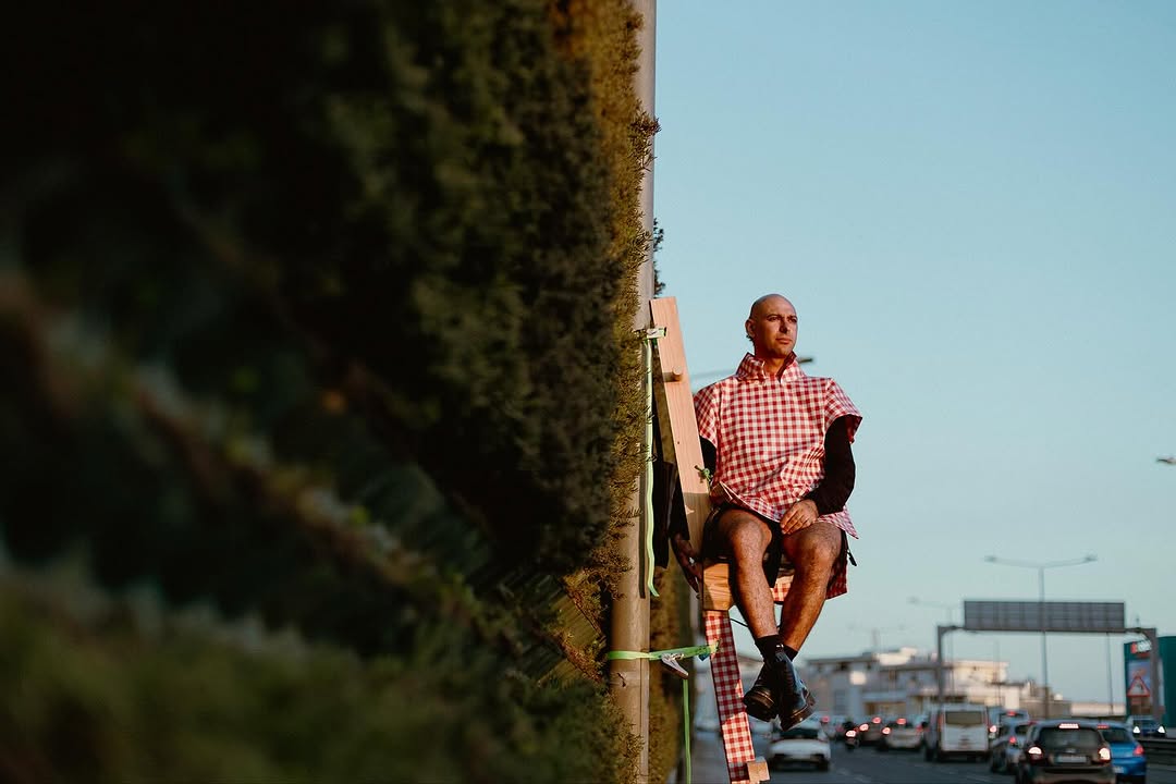 Maltese artist Keit Bonnici critiqued Malta’s tumultuous relationship with nature and open green spaces by having a ‘vertical picnic’ on the Marsa Ħamrun Bypass’s green wall.