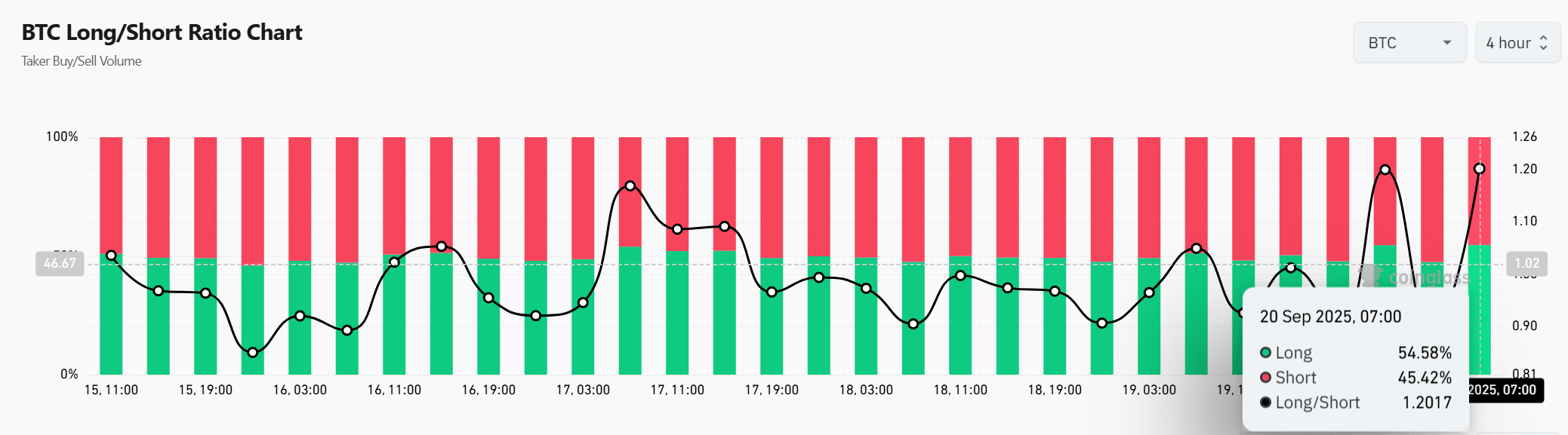 This pattern also suggested that if $123K breaks, long dominance could magnify upward momentum, propelling Bitcoin toward the next psychological threshold around $130K.