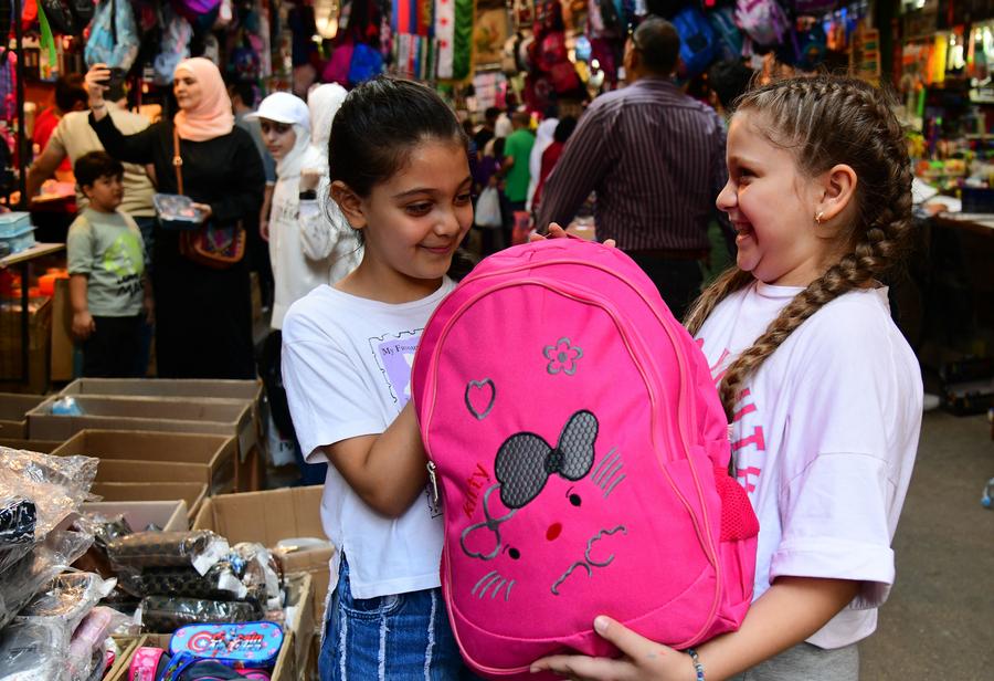 DAMASCUS, Sept. 20 (Xinhua) — With the new school season in Syria set to begin on Sunday, Damascus’ historic Asruniyeh market comes alive with colorful displays of cartoon-themed backpacks and stationery. The place hums with the chatter of bargaining parents, the laughter of children, and vendors calling out their offers to draw in shoppers.