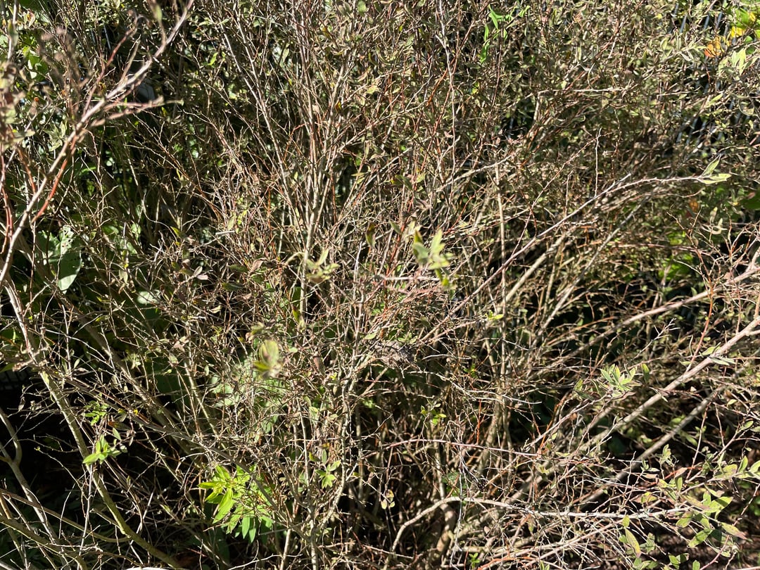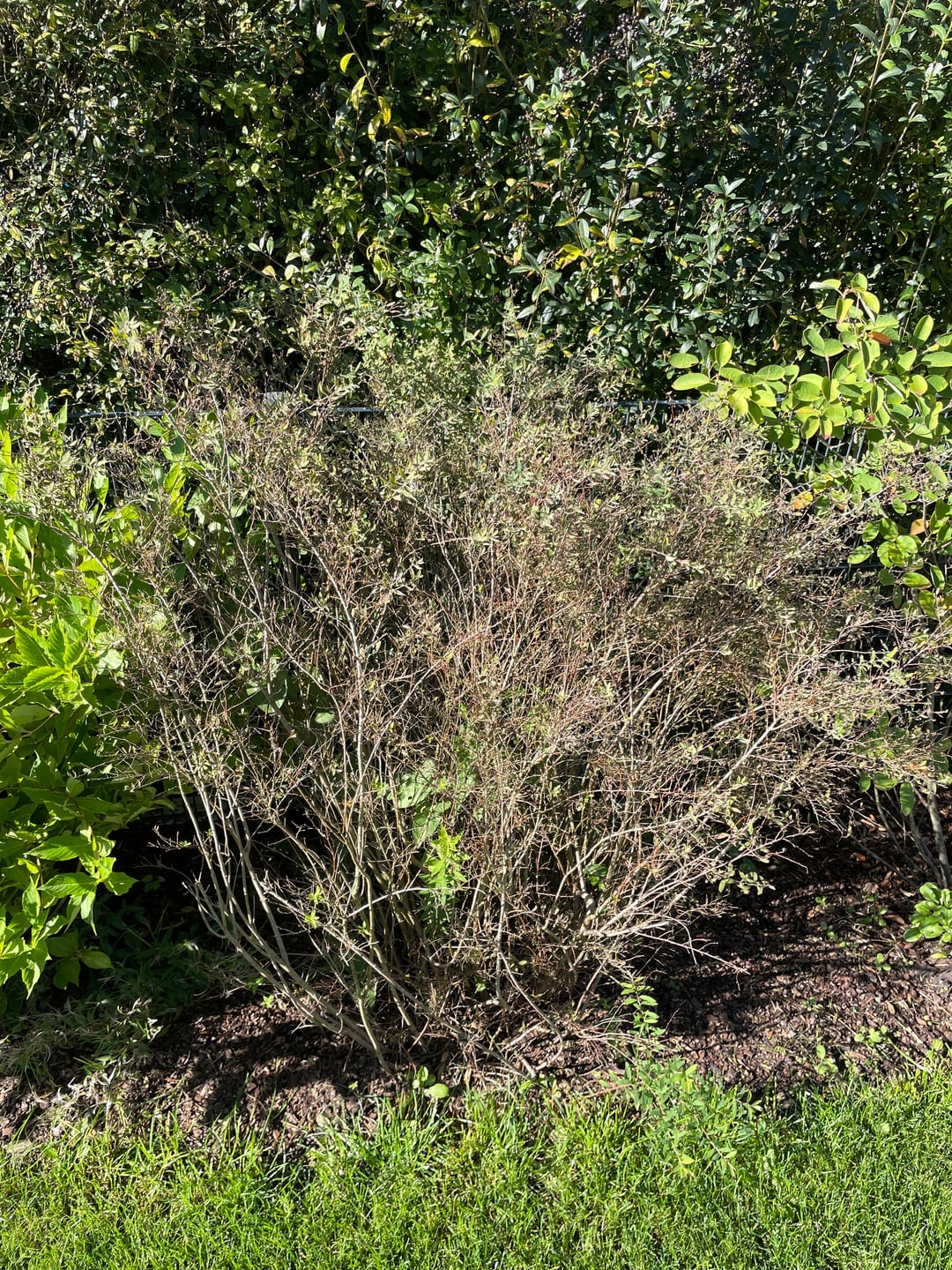 Diese Rispenspiere (genaue Sorte weiß ich leider nicht) wurde letztes Jahr im Juni gepflanzt. Schon im Frühjahr gab es kaum Blüten und richtig viele Blätter auch nicht. Über den Sommer sind es leider noch weniger geworden. 😞