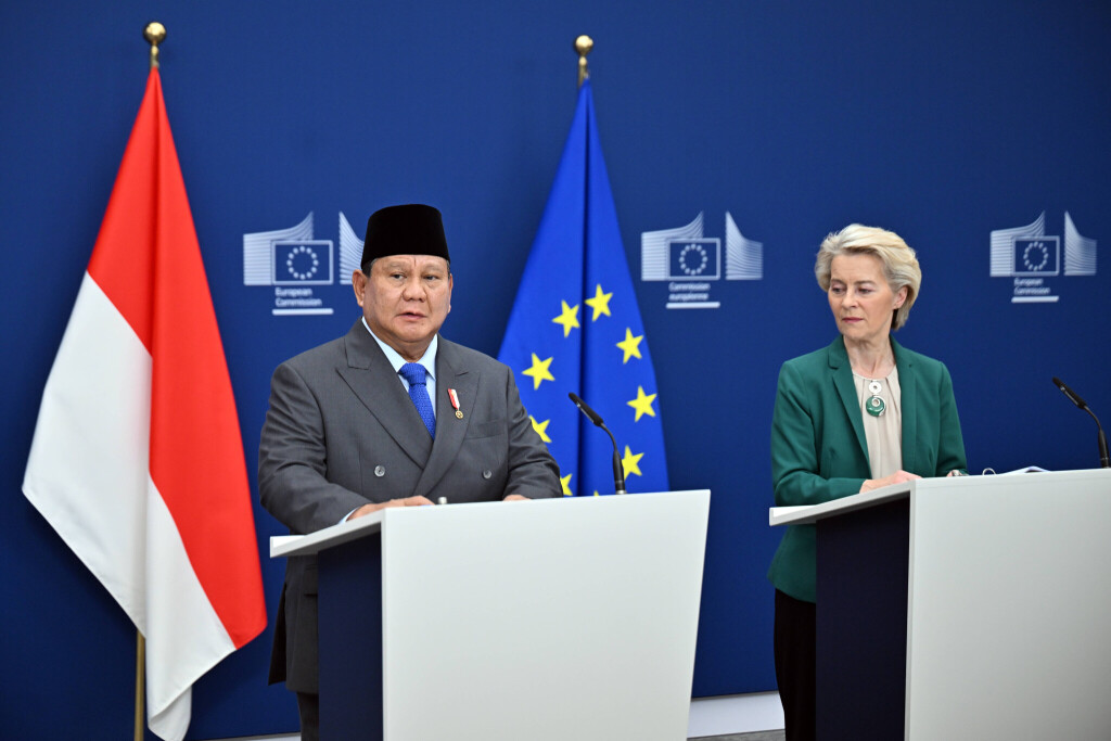 Indonesian President Prabowo Subianto and EU Commission President Ursula von der Leyen in Brussels in July.