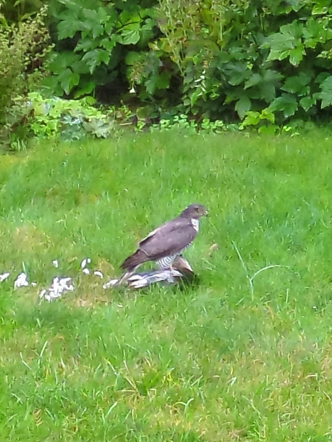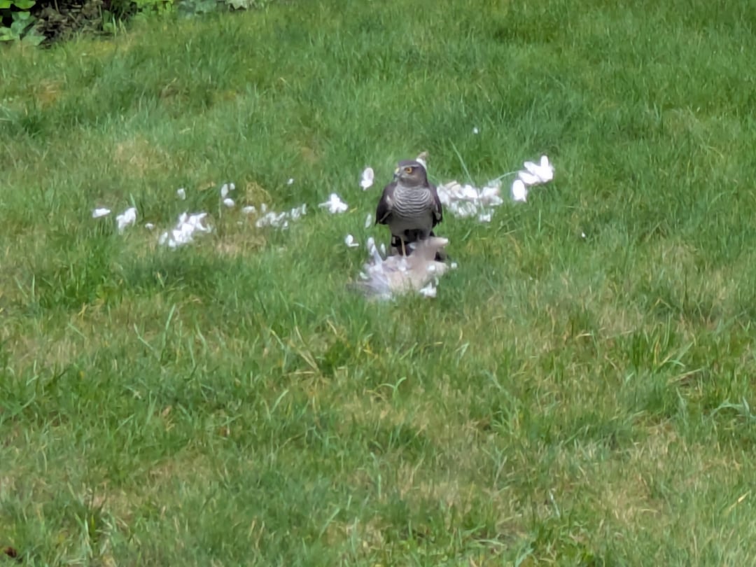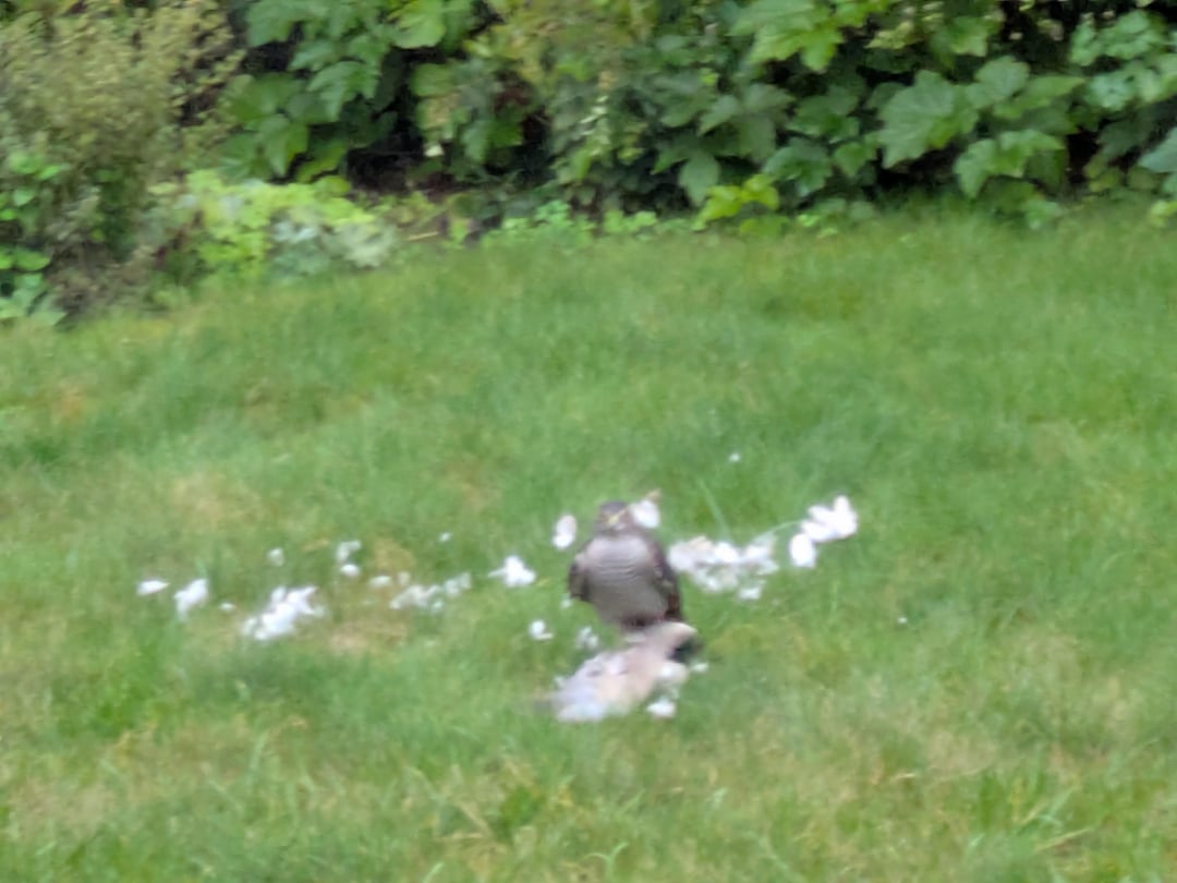Sperber frisst Türkentaube von der Farbgebung des Opfers her