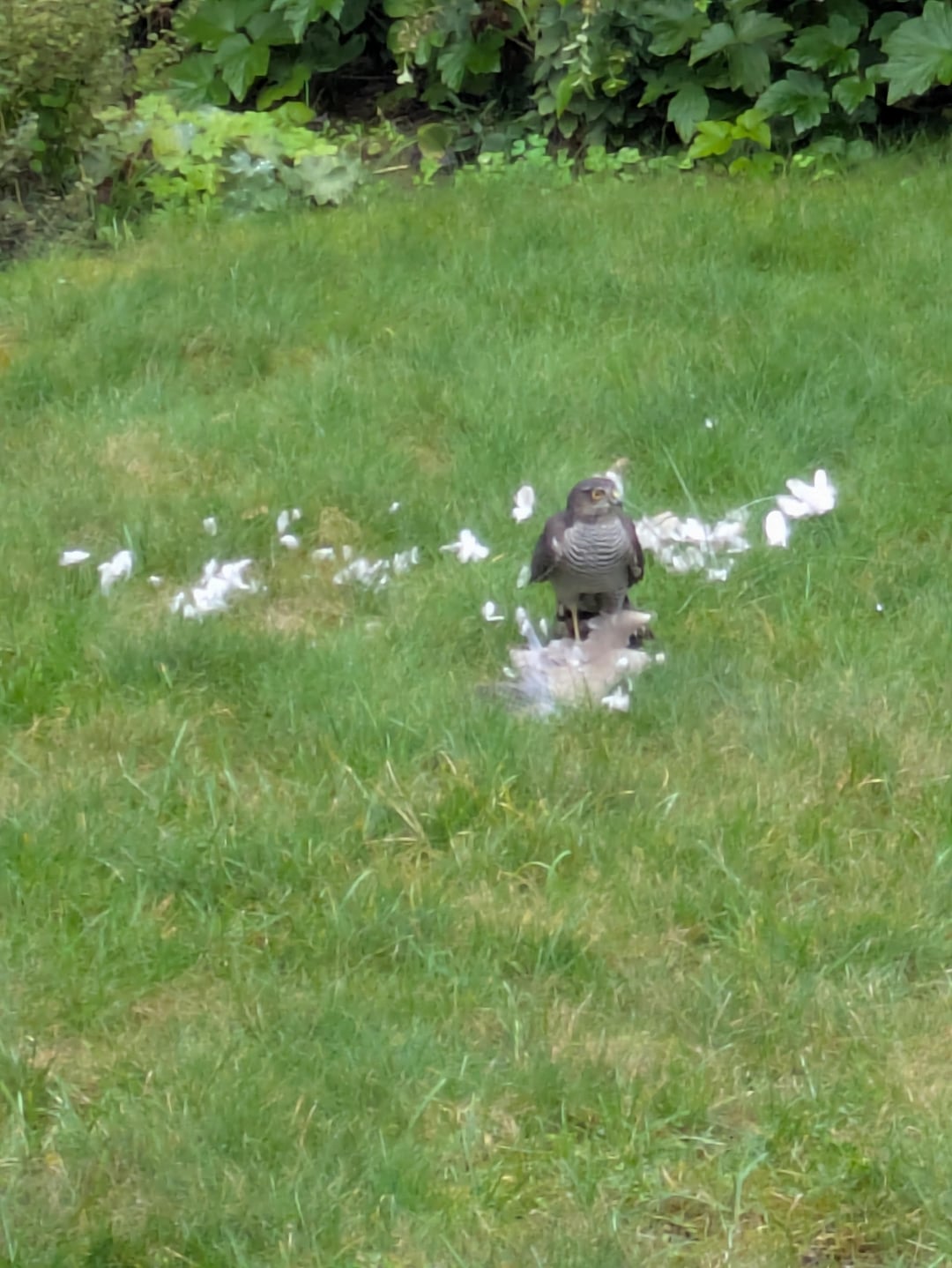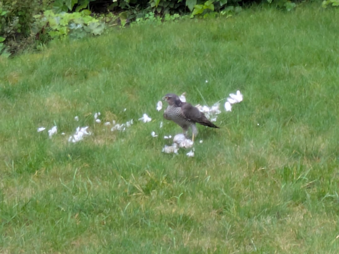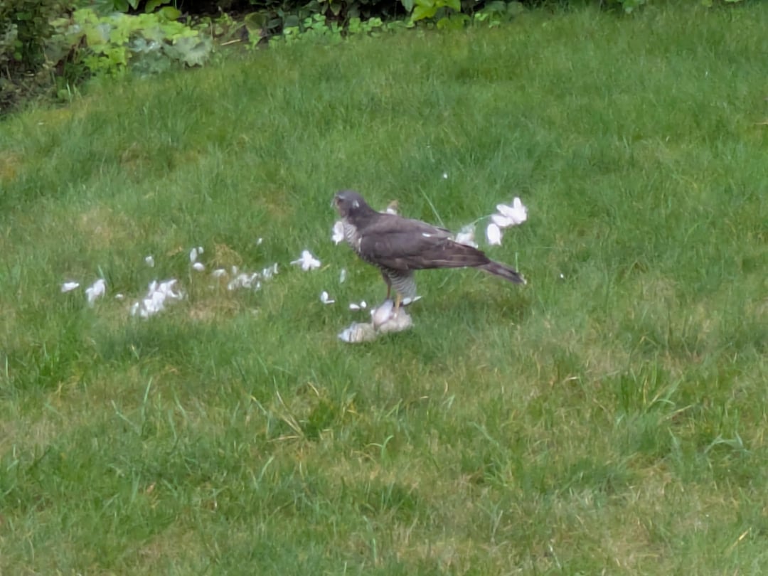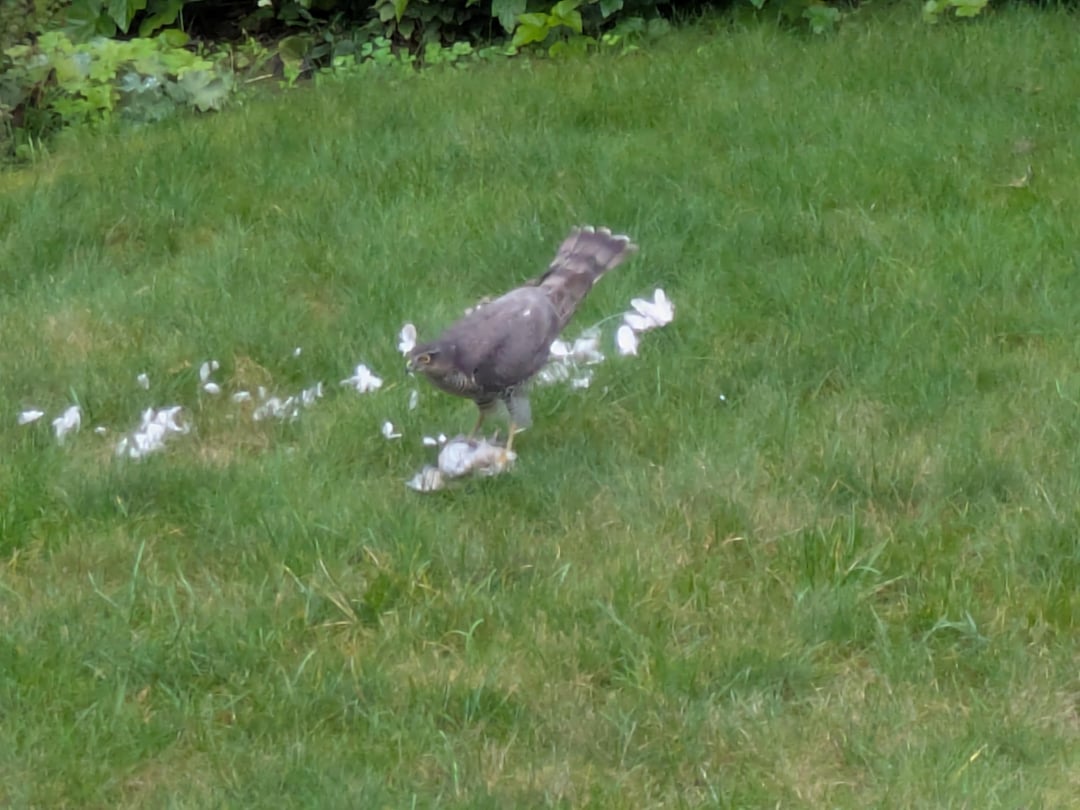 Sperber frisst Türkentaube von der Farbgebung des Opfers her