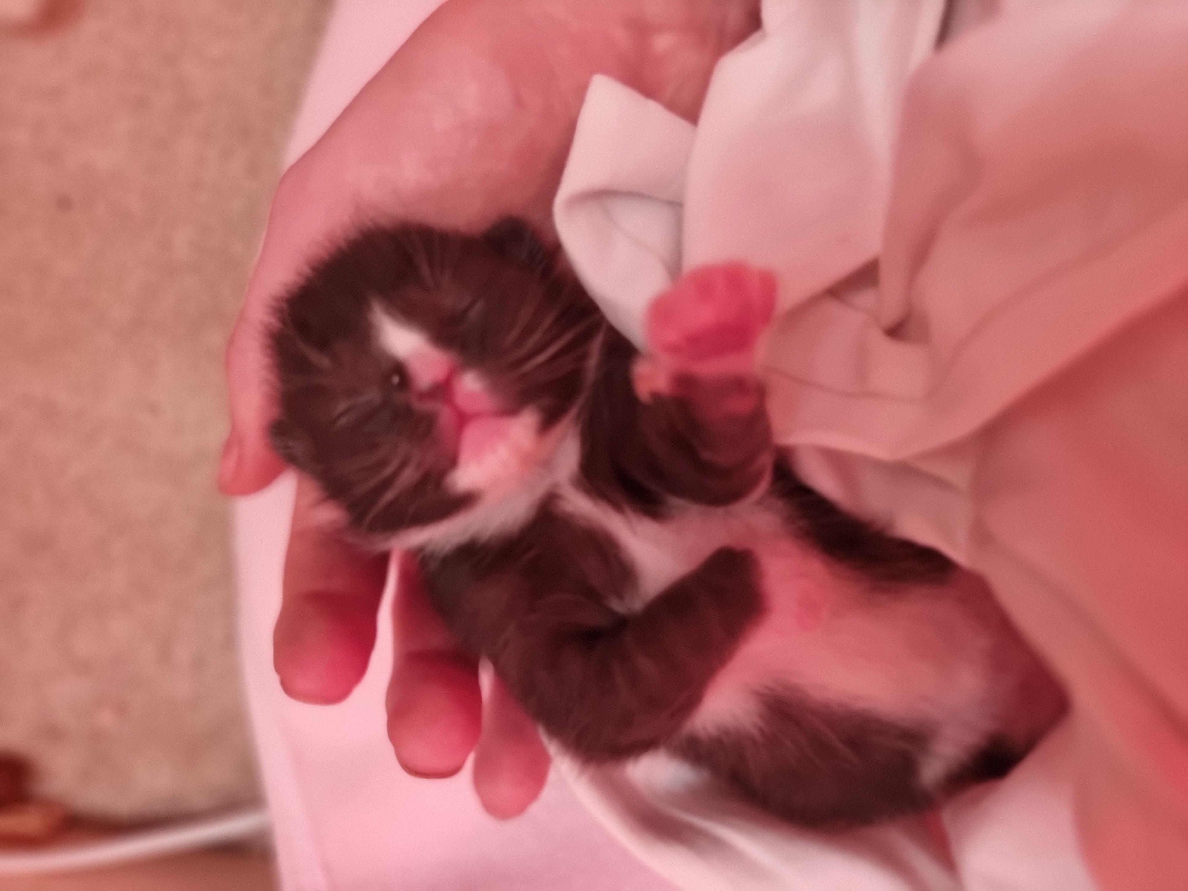 At the weekend we realised we hadnt seen her in a while and on Wednesday we found her in the bin closet with a single surviving newborn. I took them into my house and my neighbour agreed that I could keep them. I flead her as both mum and baby had visible fleas and kept them warm and fed.