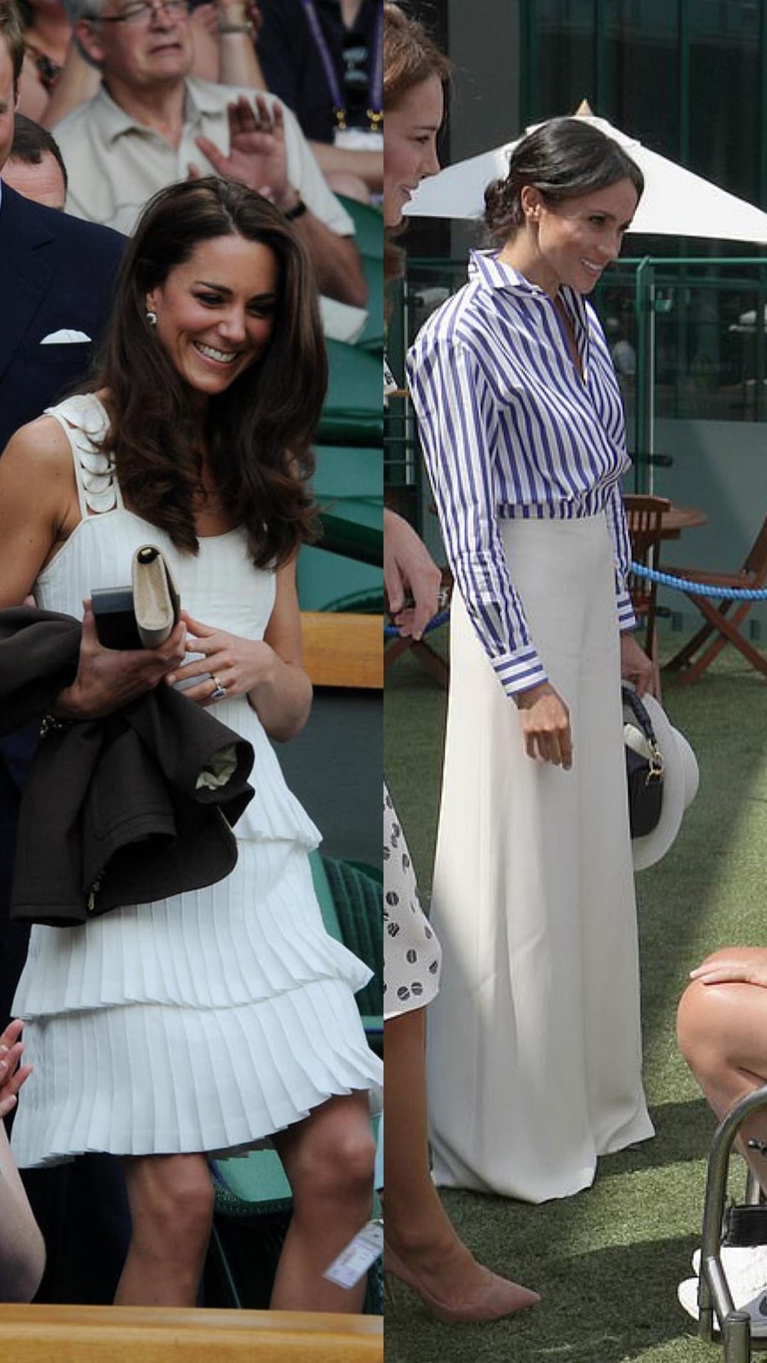 With royal fashion getting so much attention this week, I thought it’d be fun to line up Meghan and Kate’s first outfits for the same occasions. All of those are their first appearance after becoming royals, aka not their first time ever at Wimbledon.