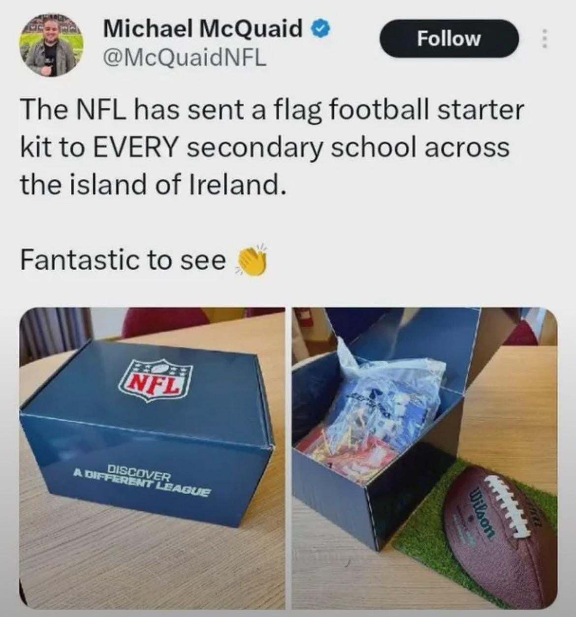 Why did they even do this? Did someone ask for these or did NFL do a U2 and just sent out these “footballs” all over Ireland?