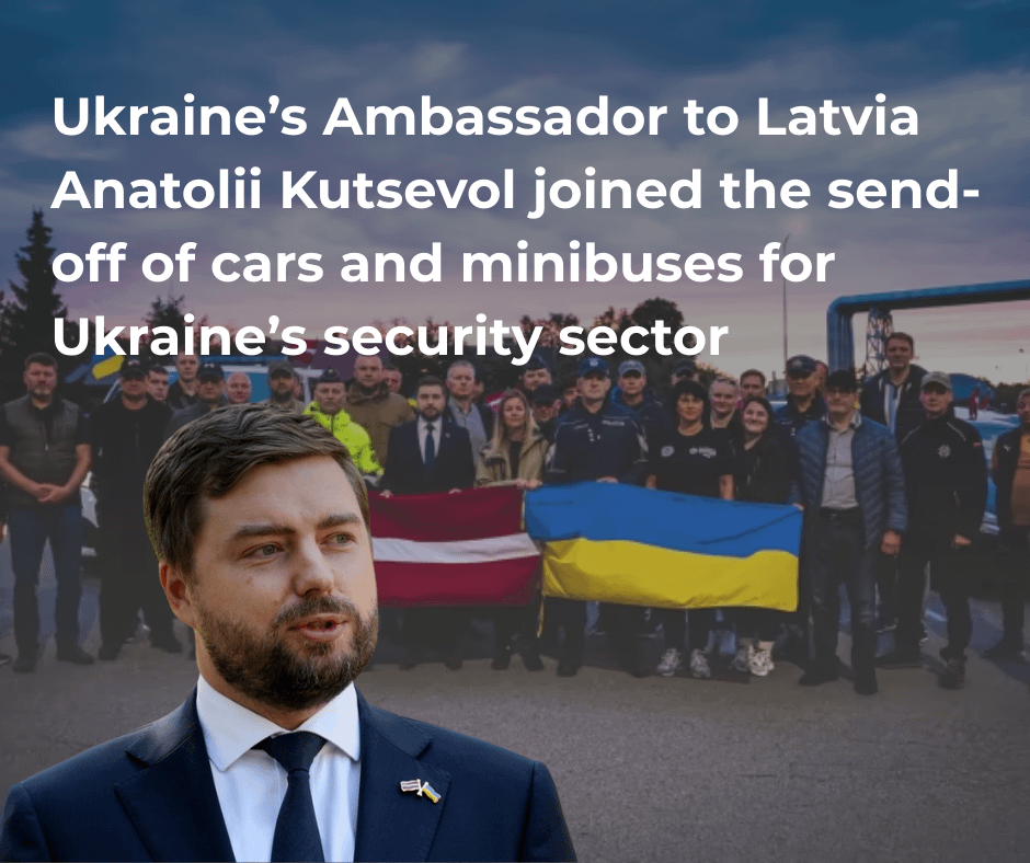 Along with vehicles, humanitarian aid — kids’ clothes, school supplies, and sports gear from the Latvian Basketball Association — will go to Donetsk and Kharkiv regions.