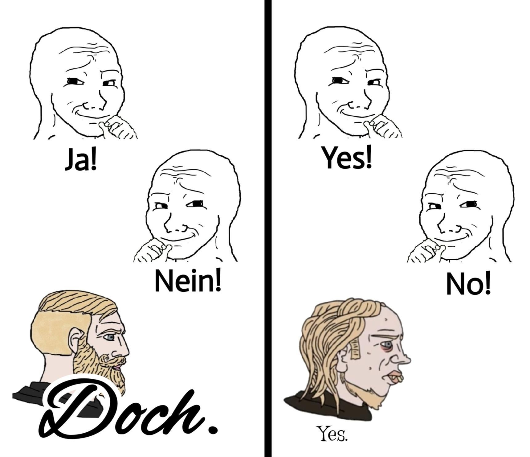 3. Spaßfakt: Im Englischen gabs das früher auch (ja = yea, doch = yes). Außerdem gabs das auch für nein: no und nay. Es gab also ein Vier-Formen-System.